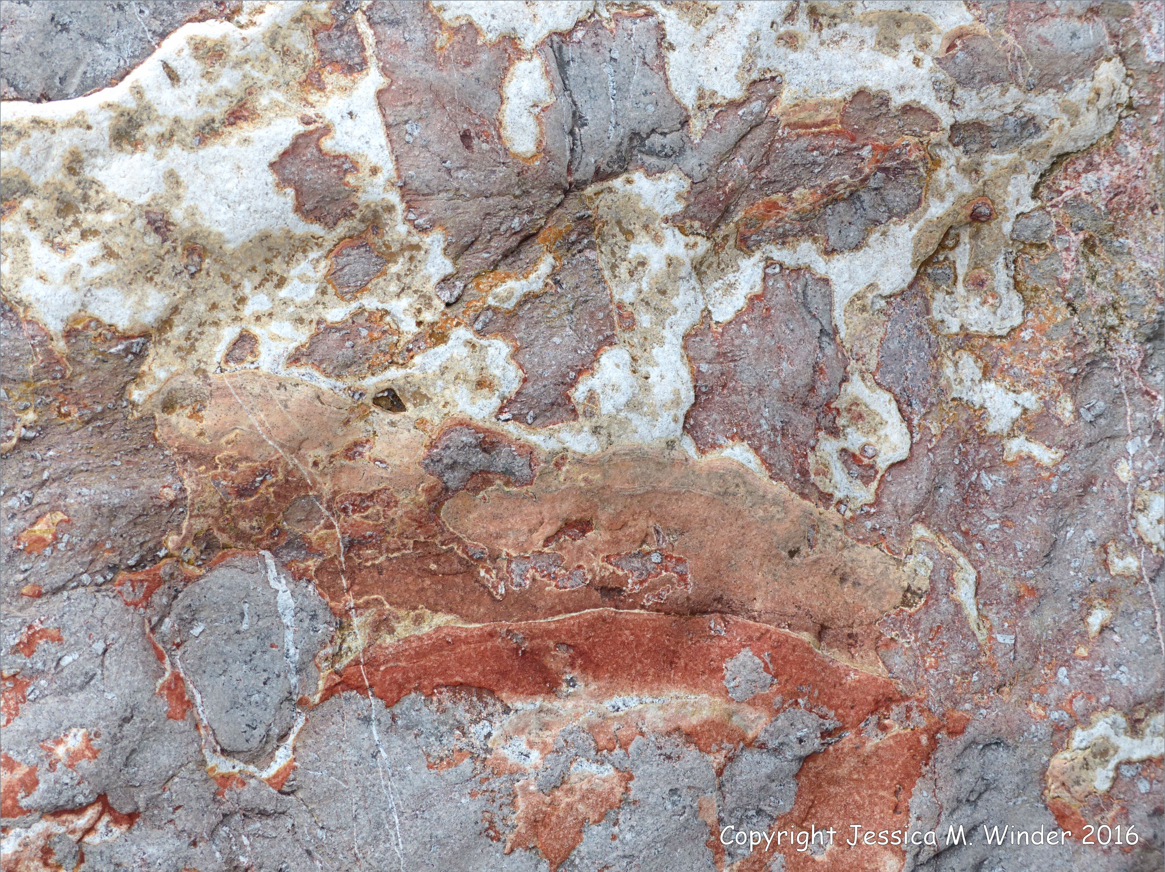 Rip-Rap at Seatown 12 – Close-up of the natural pattern in a boulder forming part of rip-rap or rock armour sea defences on the beach at Seatown, Dorset, England.