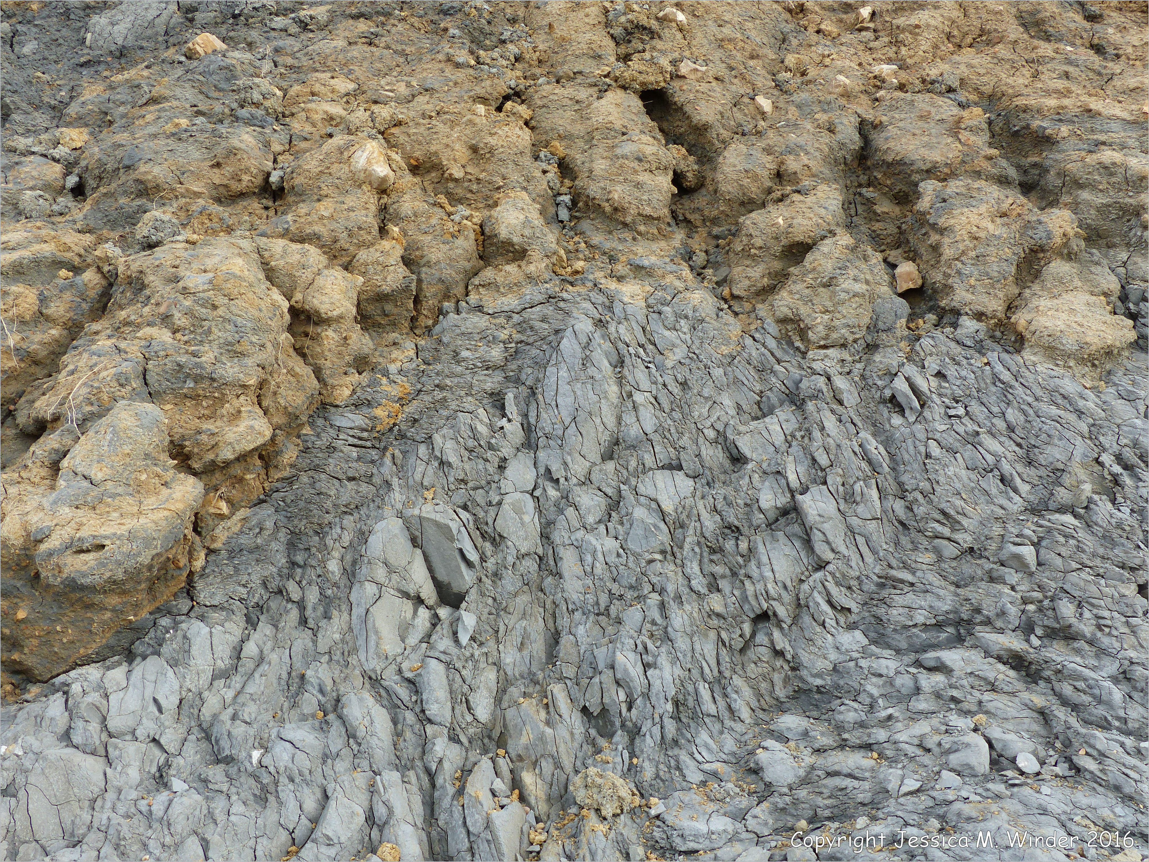 Seatown Cliffs West 6 – Textures in drying mud from cliff landslips on the beach at Seatown in Dorset, England.