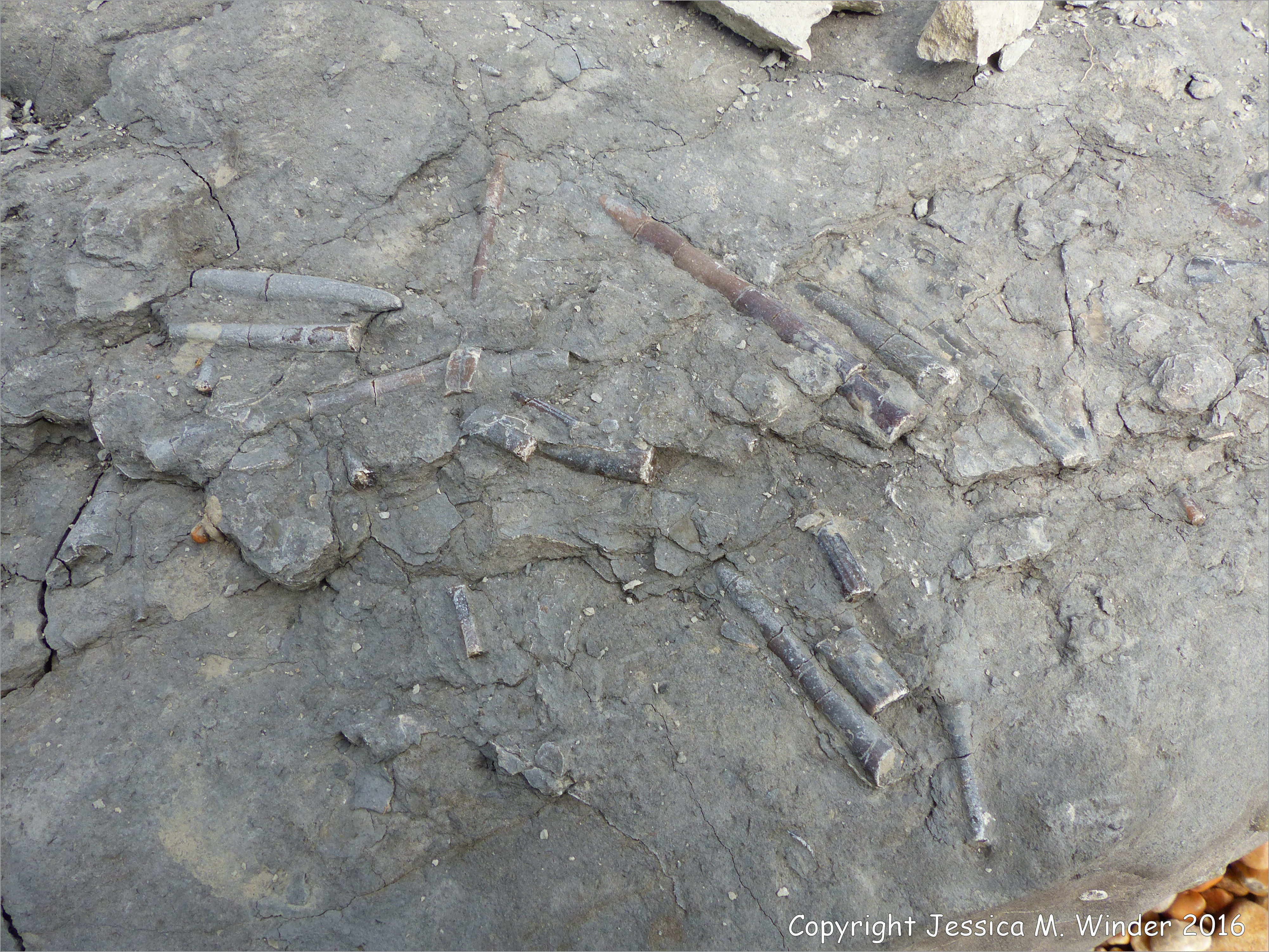 Belemnites at Seatown 10 Belemnites at Seatown 10 – Belemnite fossils in the Belemnite Marls at Seatown in Dorset, England.