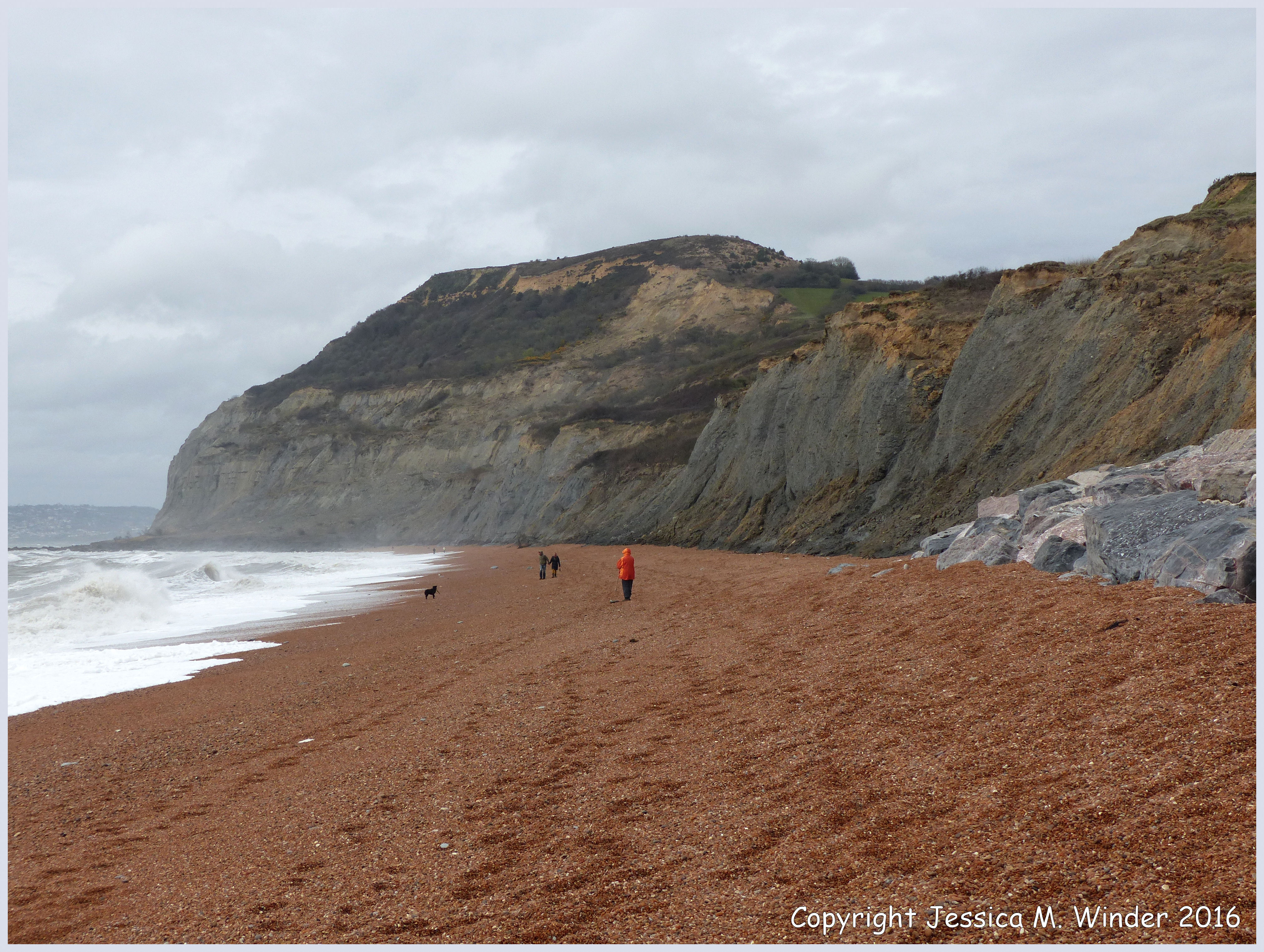 Seatown Trace Fossils 2 – Seatown beach looking west towards Golden Cap in Dorset, England – site of numerous trace fossil burrows of marine invertebrates in the Belemnite Marls from the Jurassic Period.