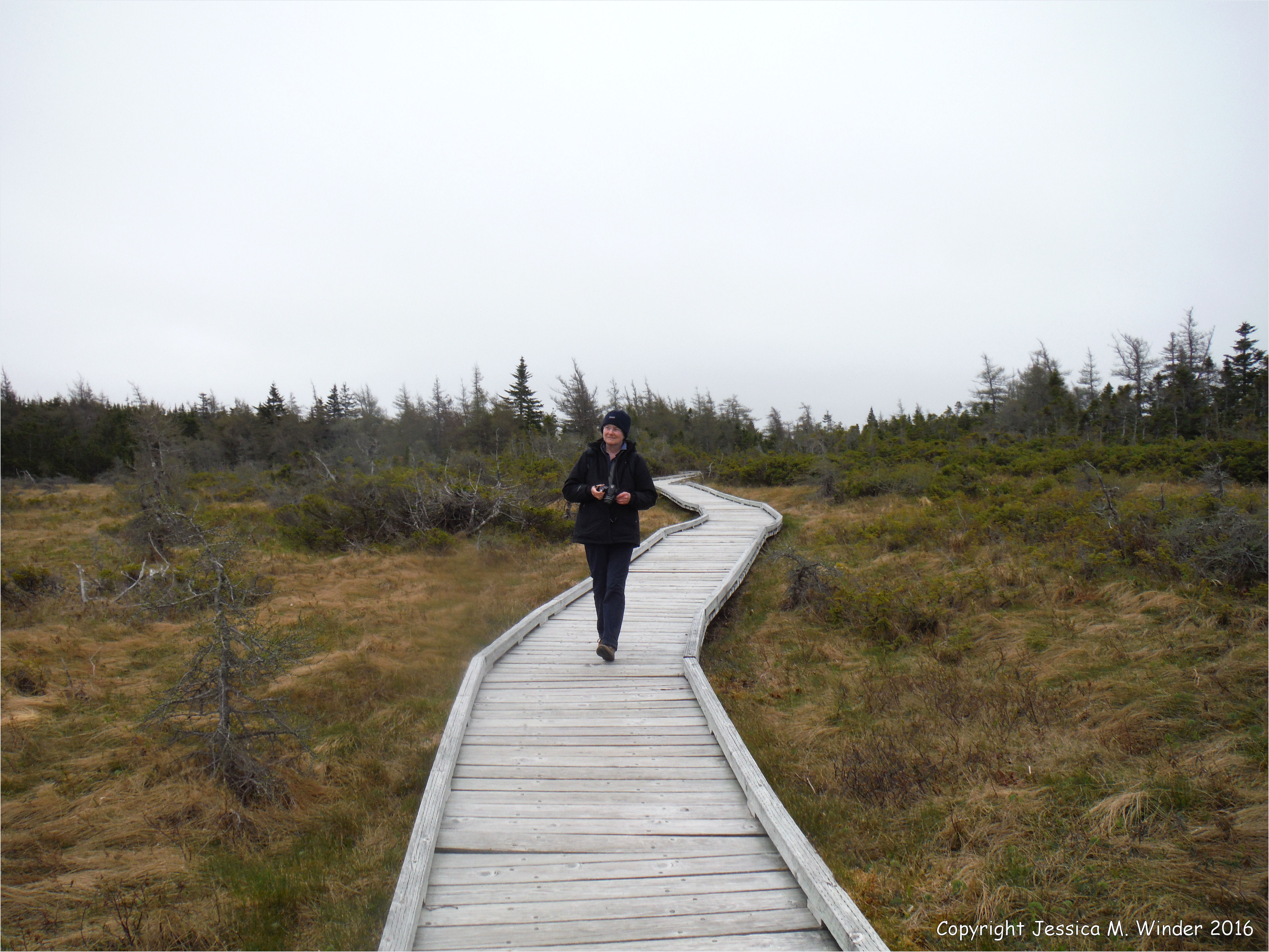 Bog on French Mountain 1 – Walking the boardwalk at the Bog on the highland plateau of French Mountain along the Cabot Trail in the Cape Breton Highlands National Park in Nova Scotia, Canada, May 2016.