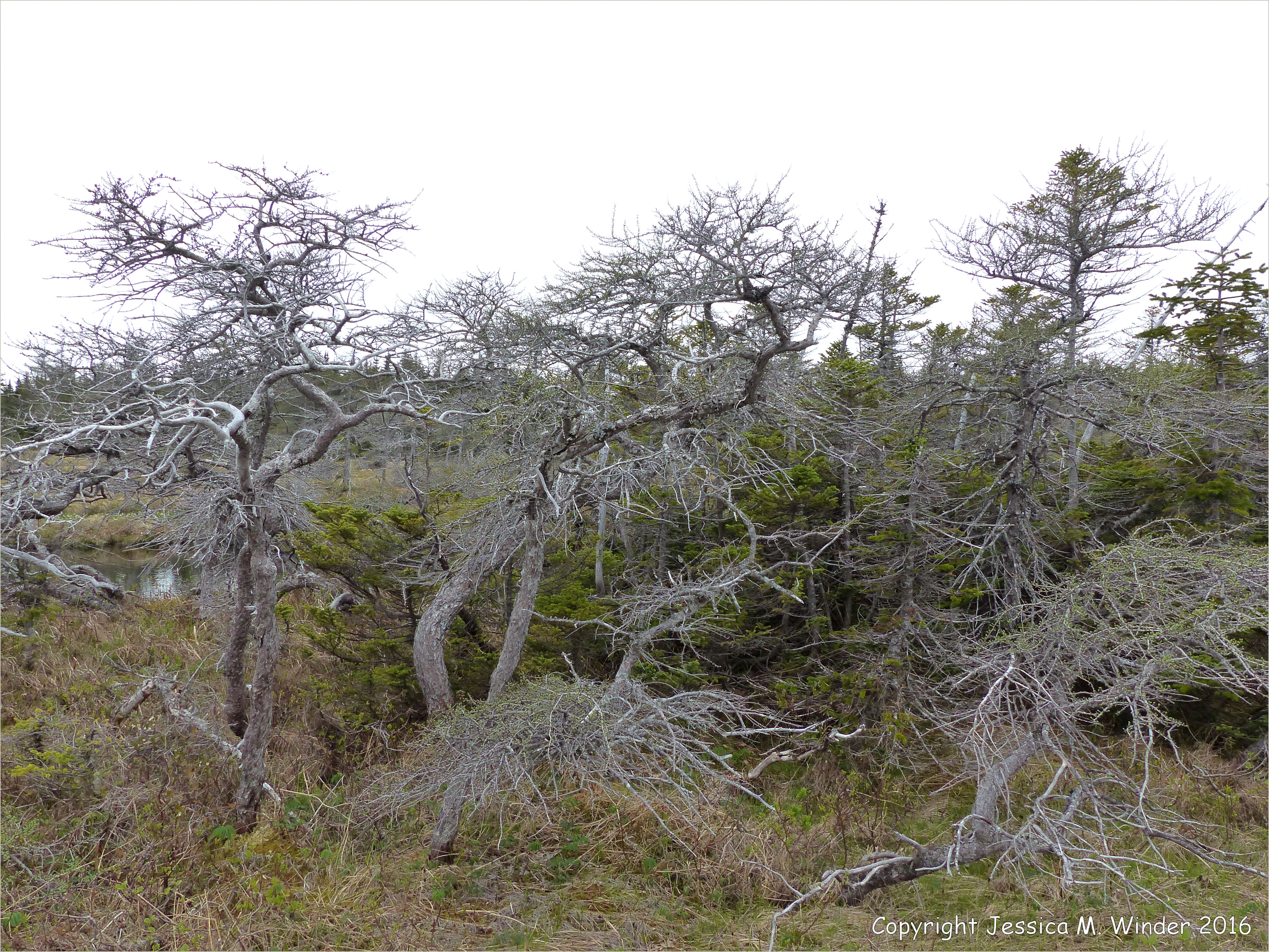 Bog on French Mountain 5 – A group of gnarled and stunted trees growing in a bog on French Mountain along the Cabot Trail in the Cape Breton Highlands National Park, Nova Scotia, Canada, May 2016.