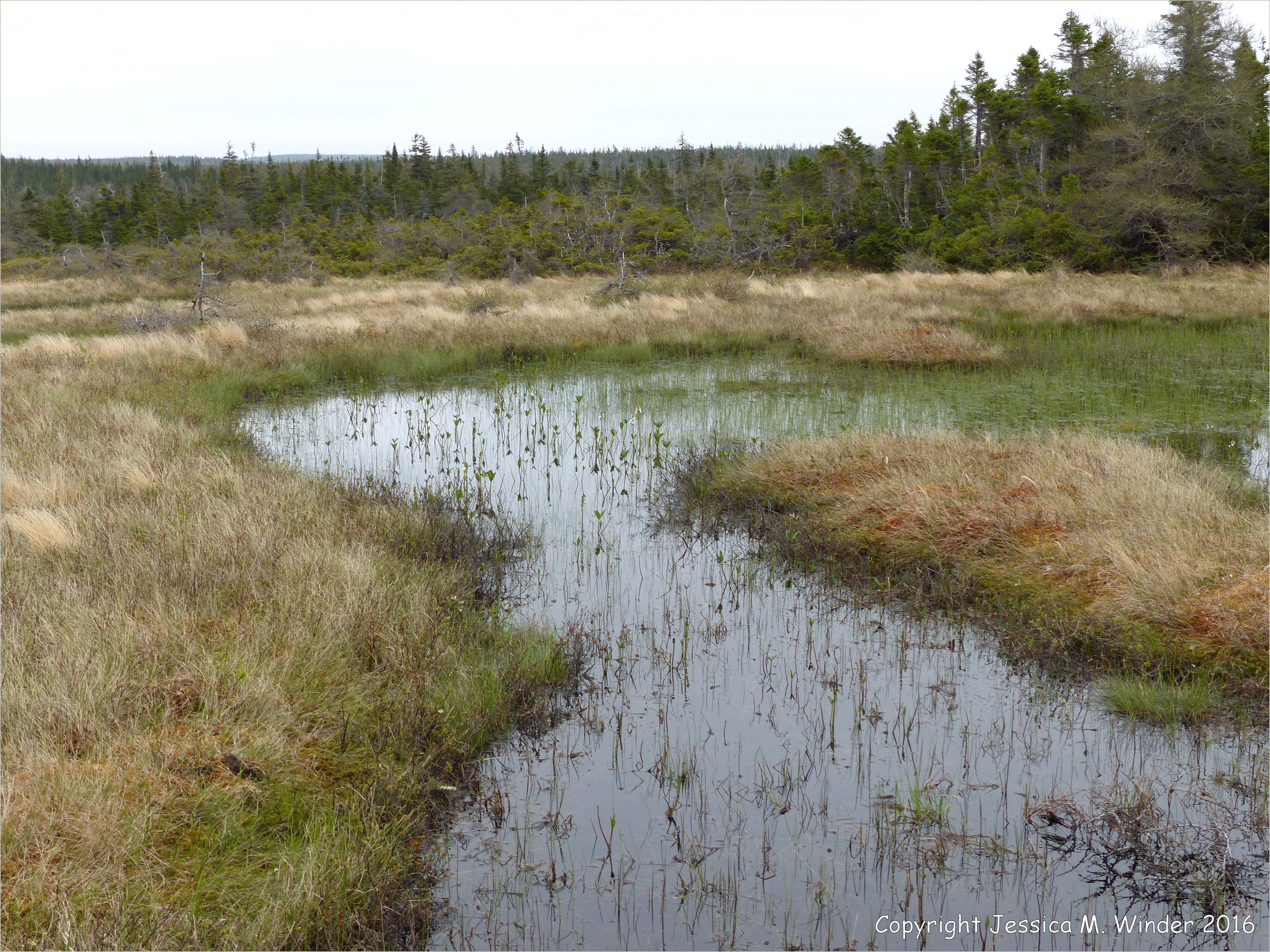 Bog on French Mountain 20 – Standing water pool in a bog on French Mountain along the Cabot Trail in the Cape Breton Highlands National Park, Nova Scotia, Canada, May 2016.