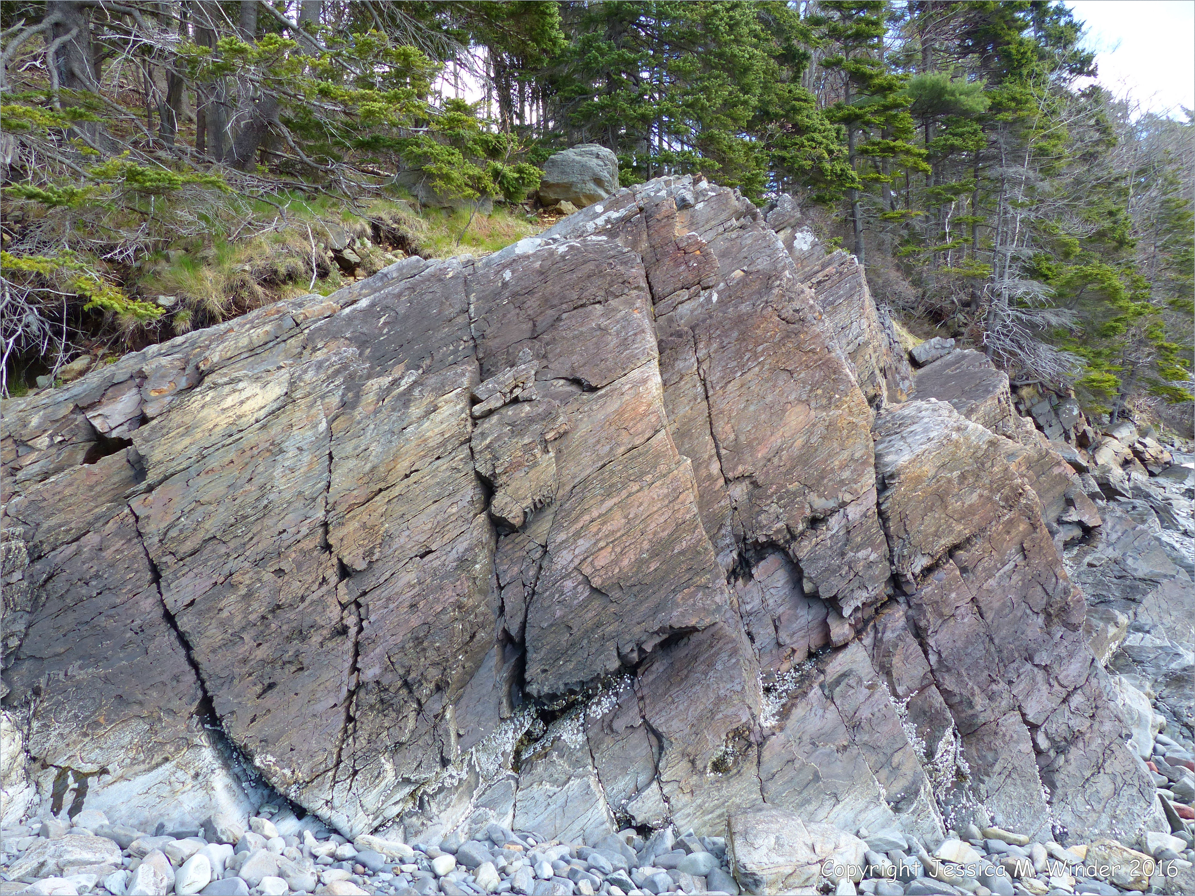 Rock Textures at Point Pleasant Park 5 – Thinly bedded metasiltstone and slate rocks of the Bluestone Formation near Chain Rock Beach, Point Pleasant Park, Halifax, Nova Scotia, Canada.