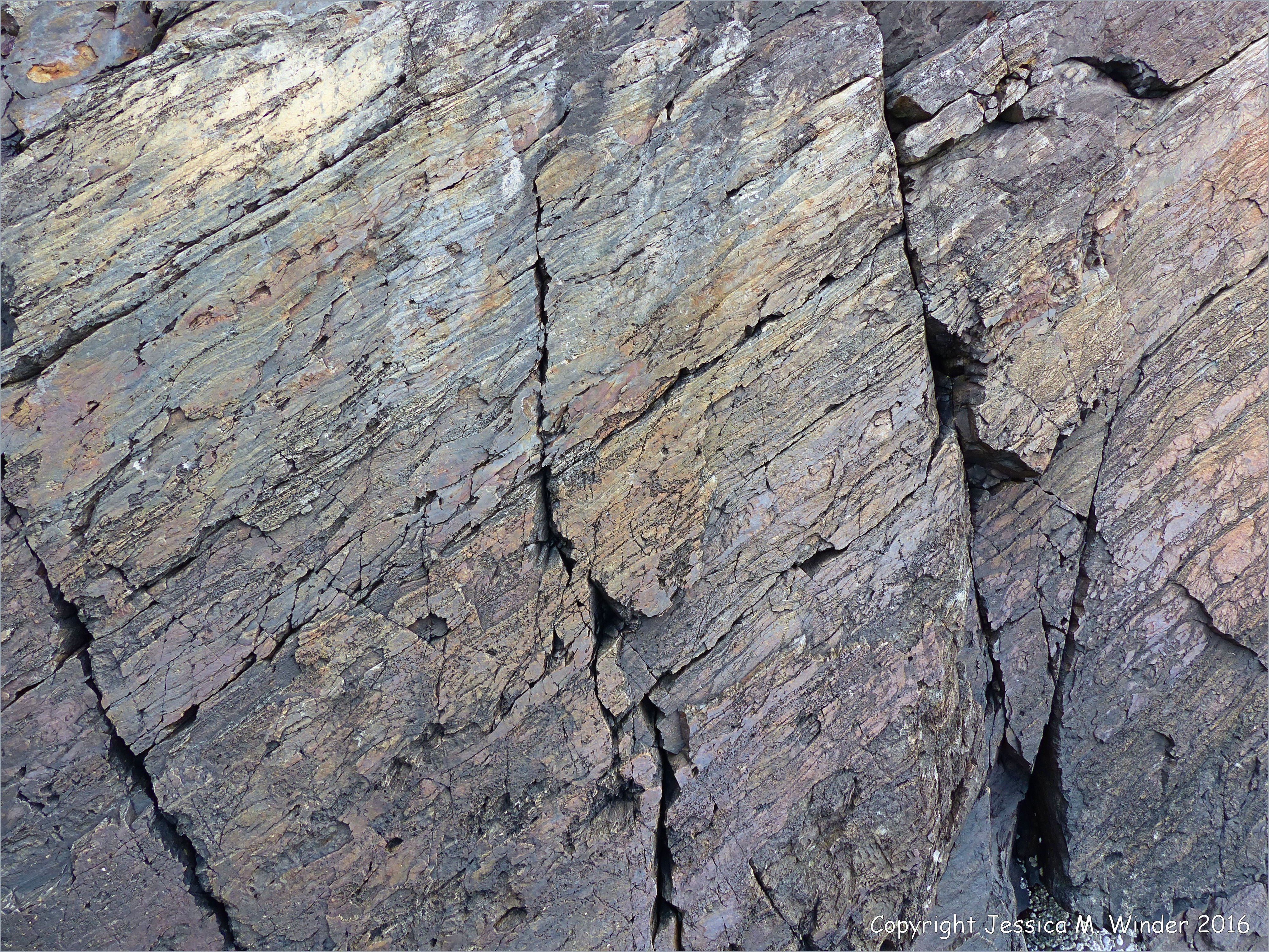 Rock Textures at Point Pleasant Park 6 – Thinly bedded metasiltstone and slate rocks of the Bluestone Formation near Chain Rock Beach, Point Pleasant Park, Halifax, Nova Scotia, Canada.