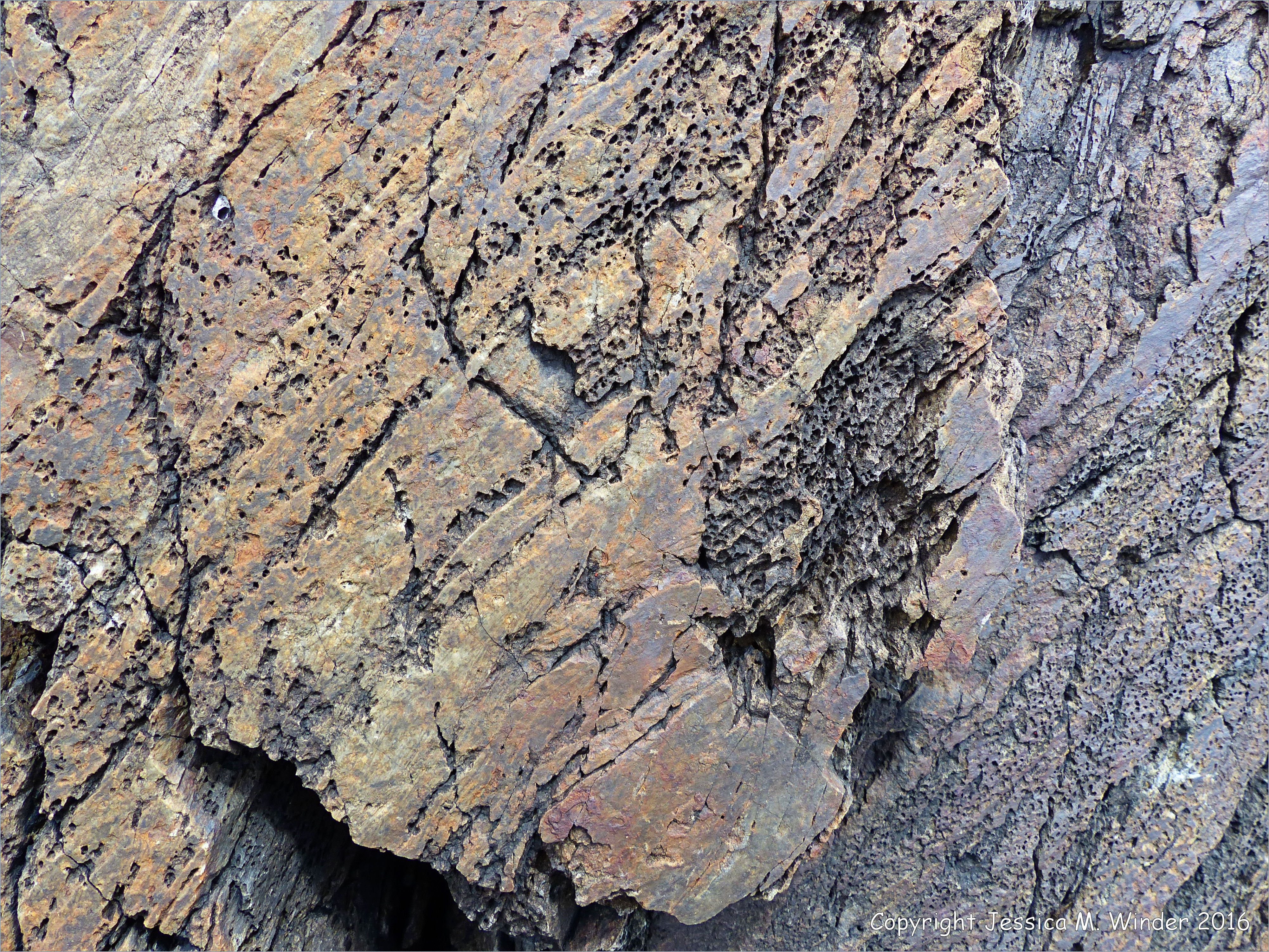 Rock Textures at Point Pleasant Park 11 – Thinly bedded metasiltstone and slate rocks of the Bluestone Formation near Chain Rock Beach, Point Pleasant Park, Halifax, Nova Scotia, Canada.