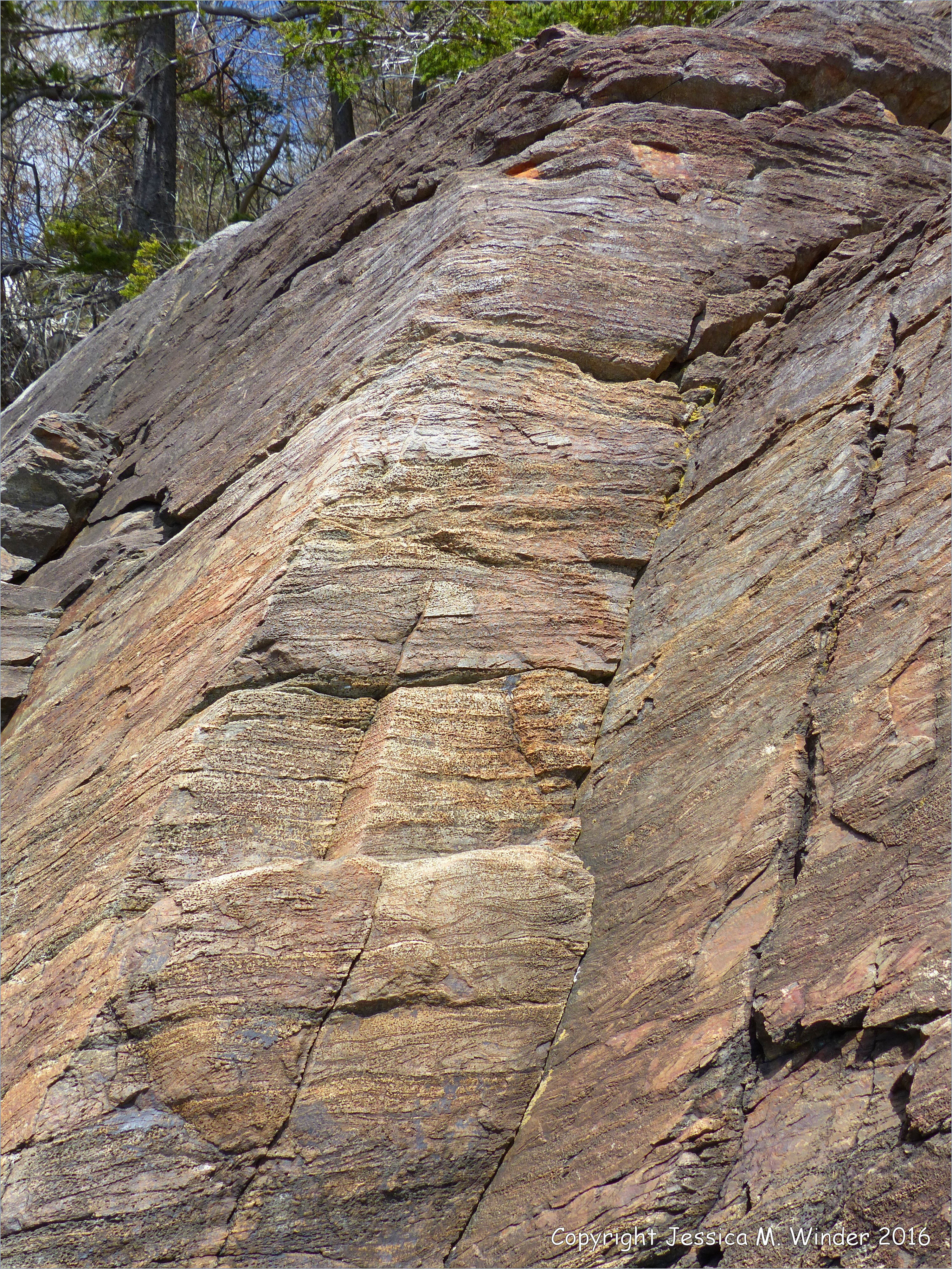 Rock Textures at Point Pleasant Park 18 – Thinly bedded metasiltstone and slate rocks of the Bluestone Formation near Chain Rock Beach, Point Pleasant Park, Halifax, Nova Scotia, Canada.