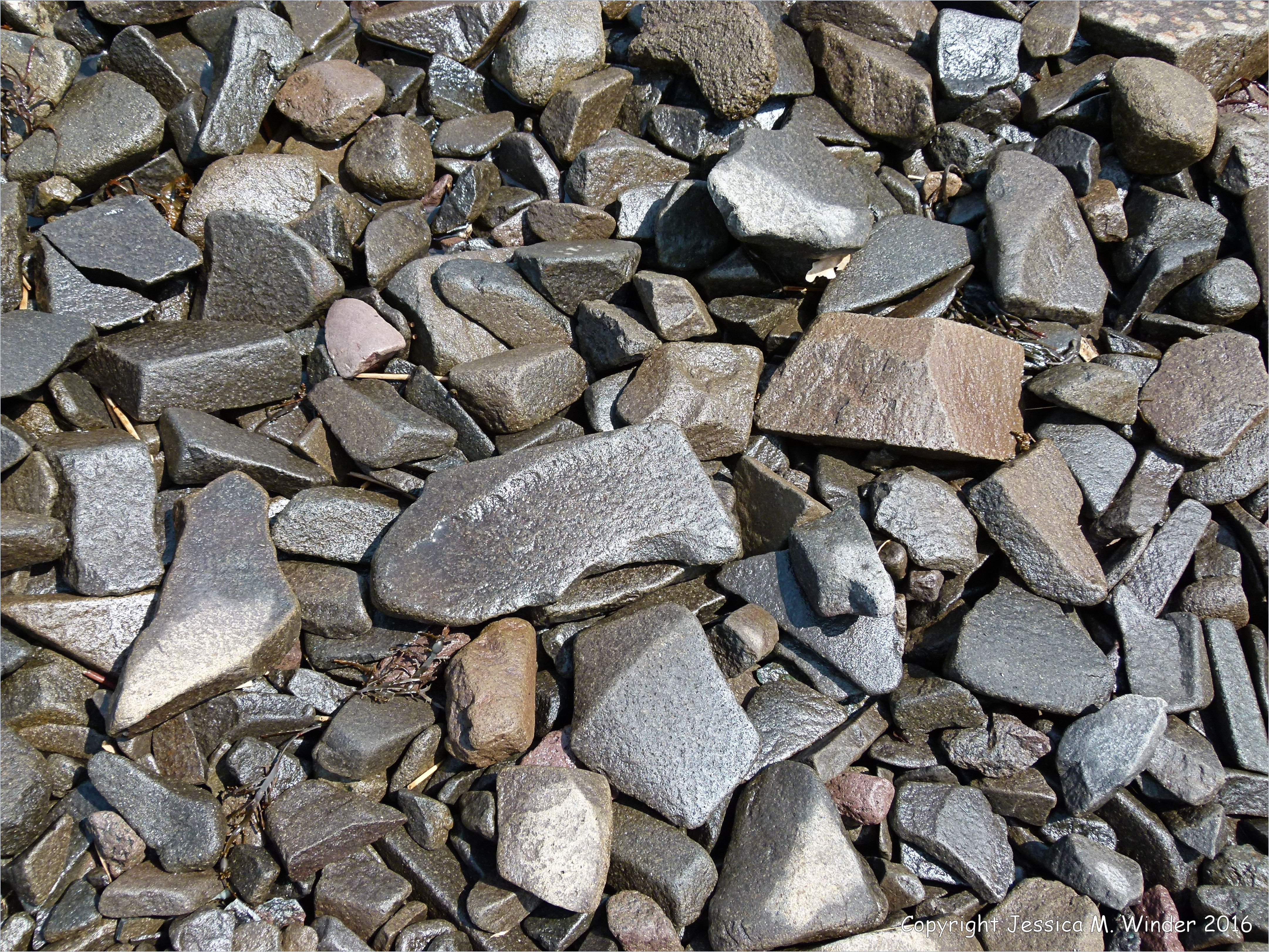 Partridge Island 8 – Beach stones mainly of volcanic basalt at Partridge Island, Nova Scotia, Canada, Lava stones were once used by the Mi’kmaq people in their sweat lodges.