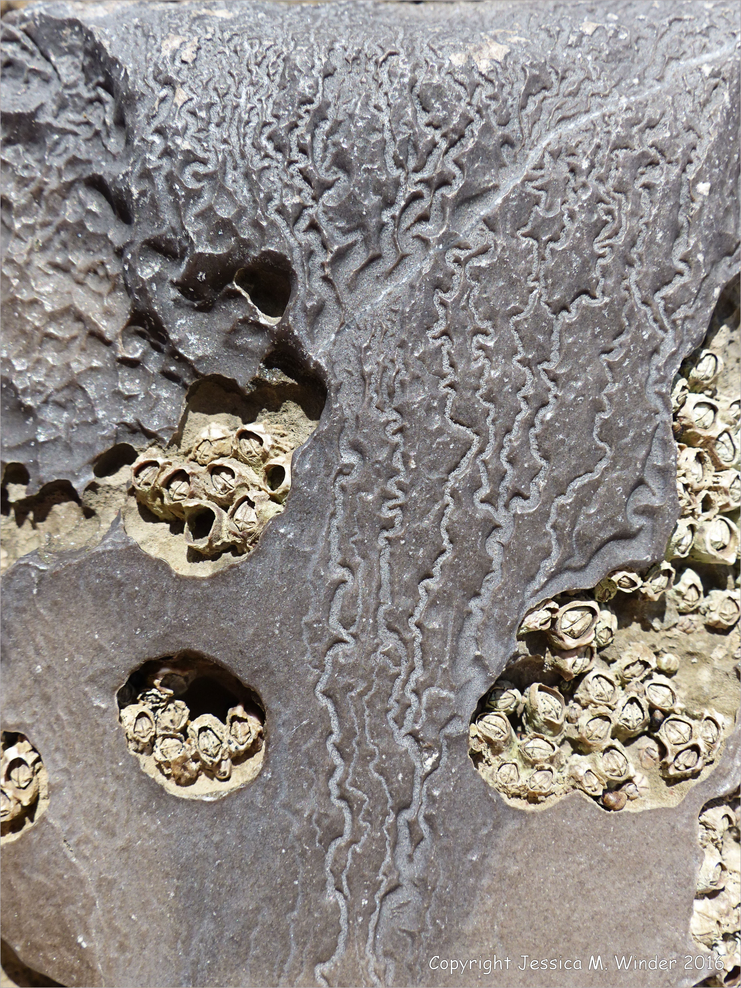 Little Tor Rock Texture 4 – Small scale erosion patterns on Carboniferous limestone rocks of the Hunts bay Oolite Sub Group at Little Tor on the Gower Peninsula in South Wales.