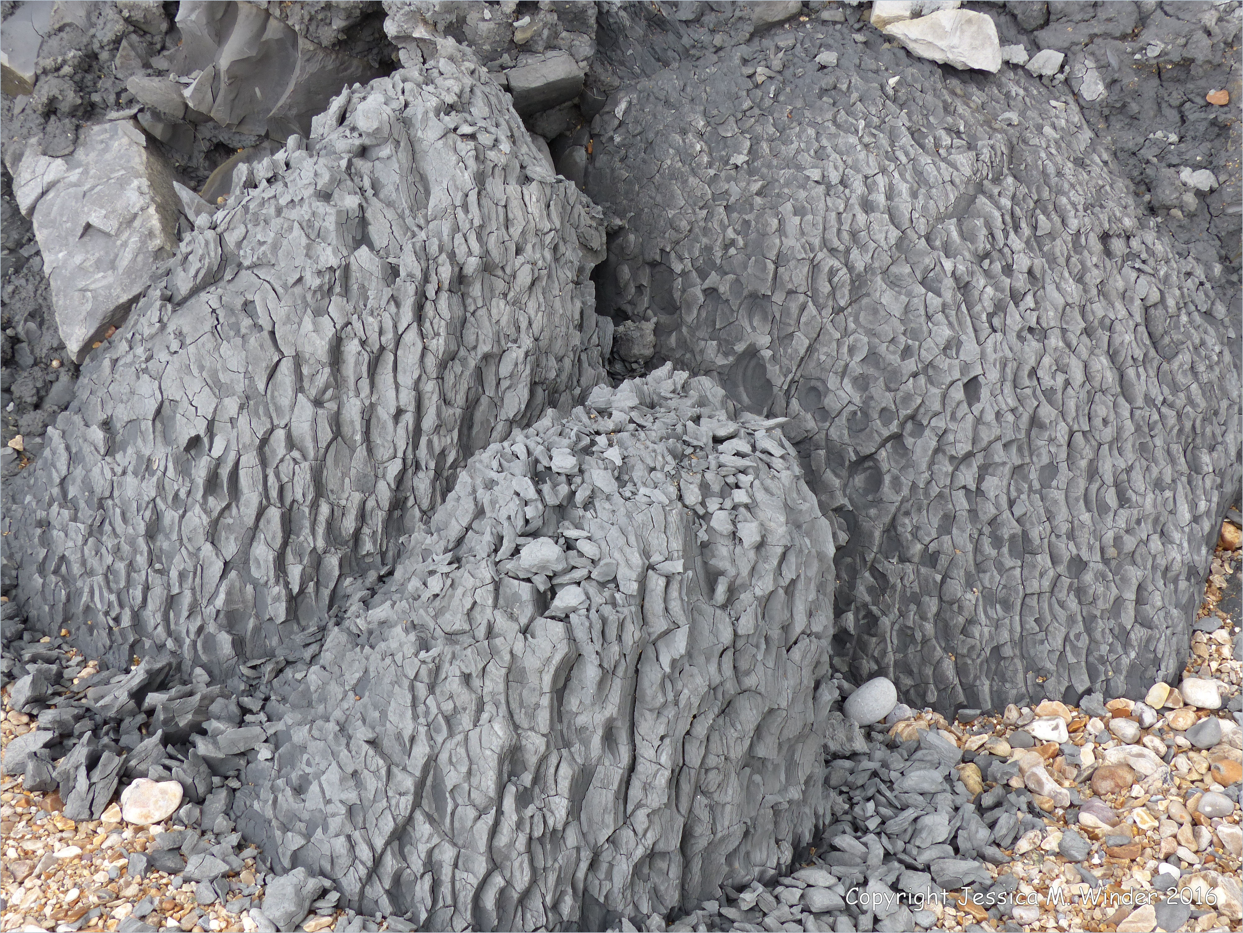 Beach Boulders at Charmouth Beach (East) 15 – Beach boulders from the Charmouth Mudstone Formation at Charmouth on the World Heritage Jurassic Coast in Dorset, England.