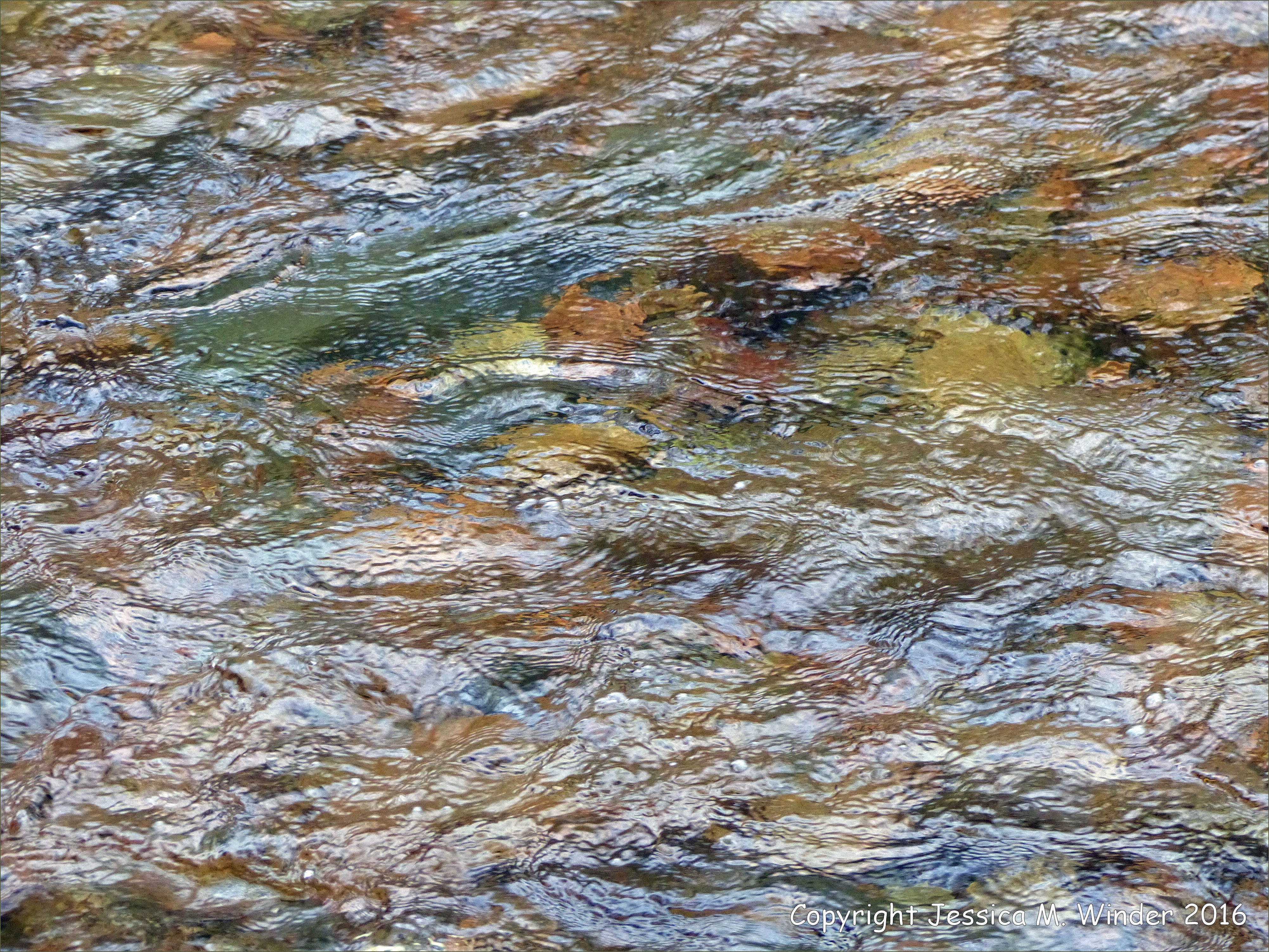 MacIntosh Brook 4 – Water flowing over ancient rocks of many colours in a mountain stream at MacIntosh Brook on the Cabot Trail in the Cape Breton Highlands National Park in Nova Scotia, Canada.