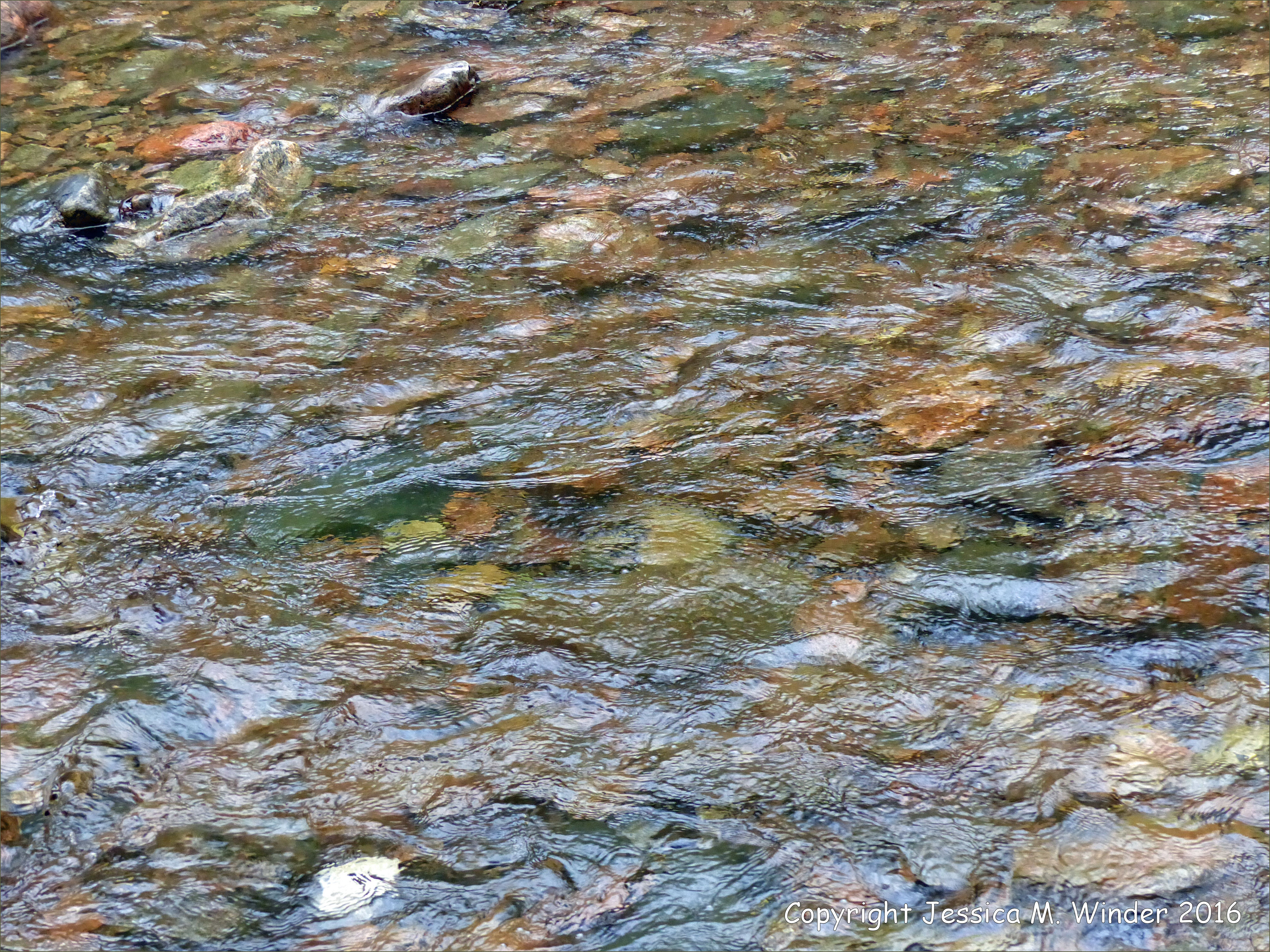MacIntosh Brook 6 – Water flowing over ancient rocks of many colours in a mountain stream at MacIntosh Brook on the Cabot Trail in the Cape Breton Highlands National Park in Nova Scotia, Canada.