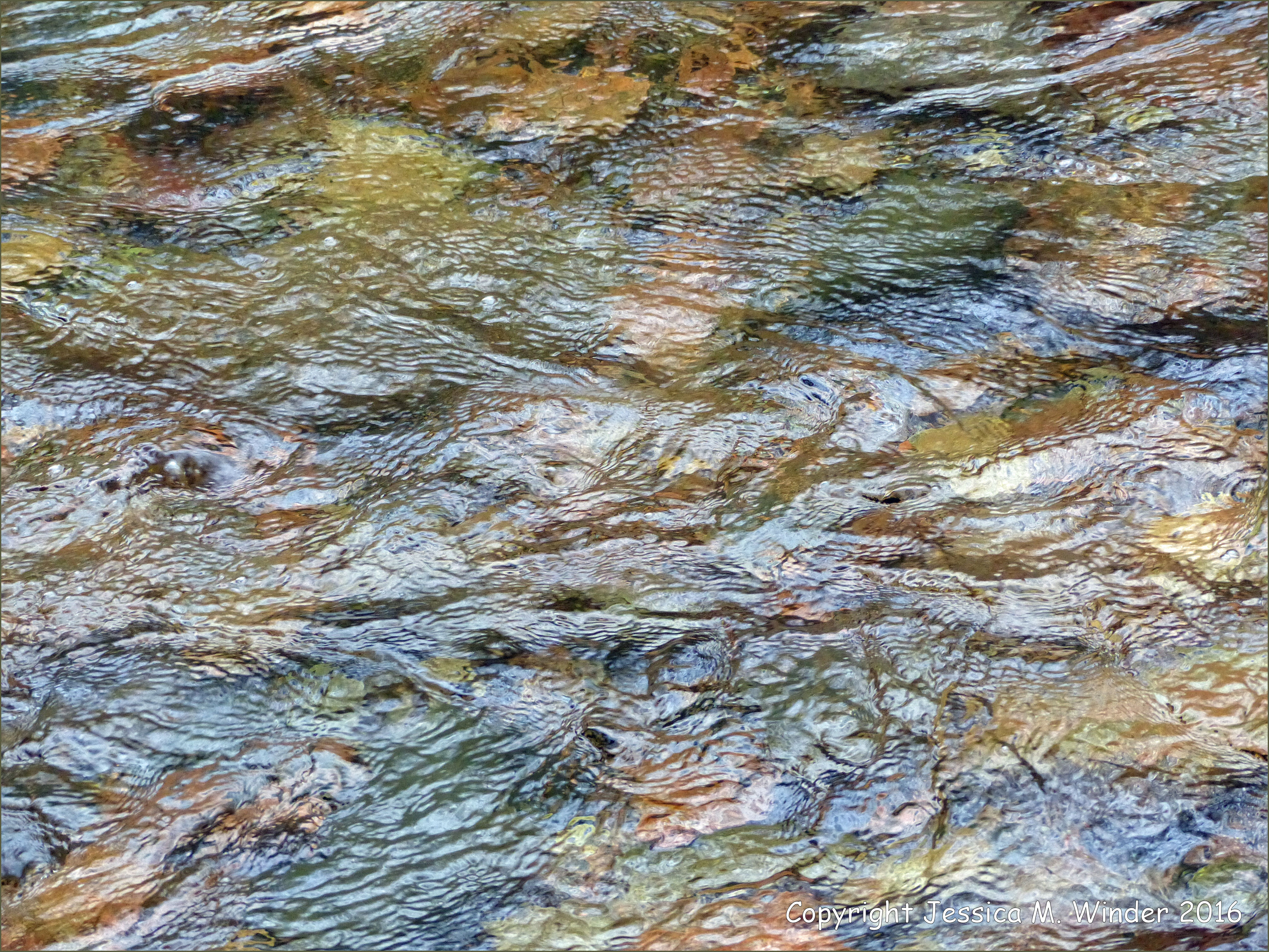 MacIntosh Brook 5 – Water flowing over ancient rocks of many colours in a mountain stream at MacIntosh Brook on the Cabot Trail in the Cape Breton Highlands National Park in Nova Scotia, Canada.