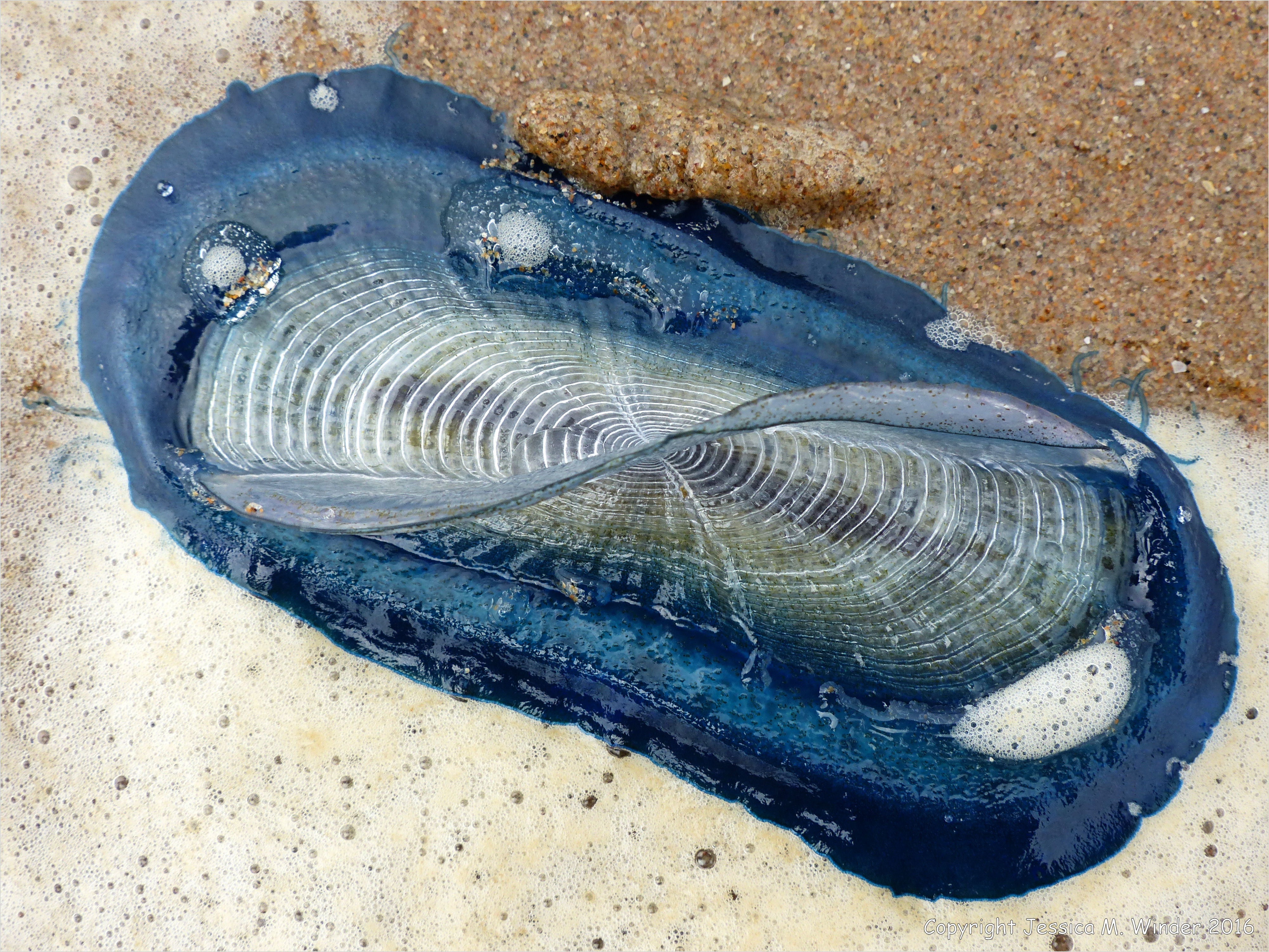 Velella velella 6 – By-the-wind sailor, a pelagic colonial hydroid, on the beach at Rhossili, Gower, South Wales.