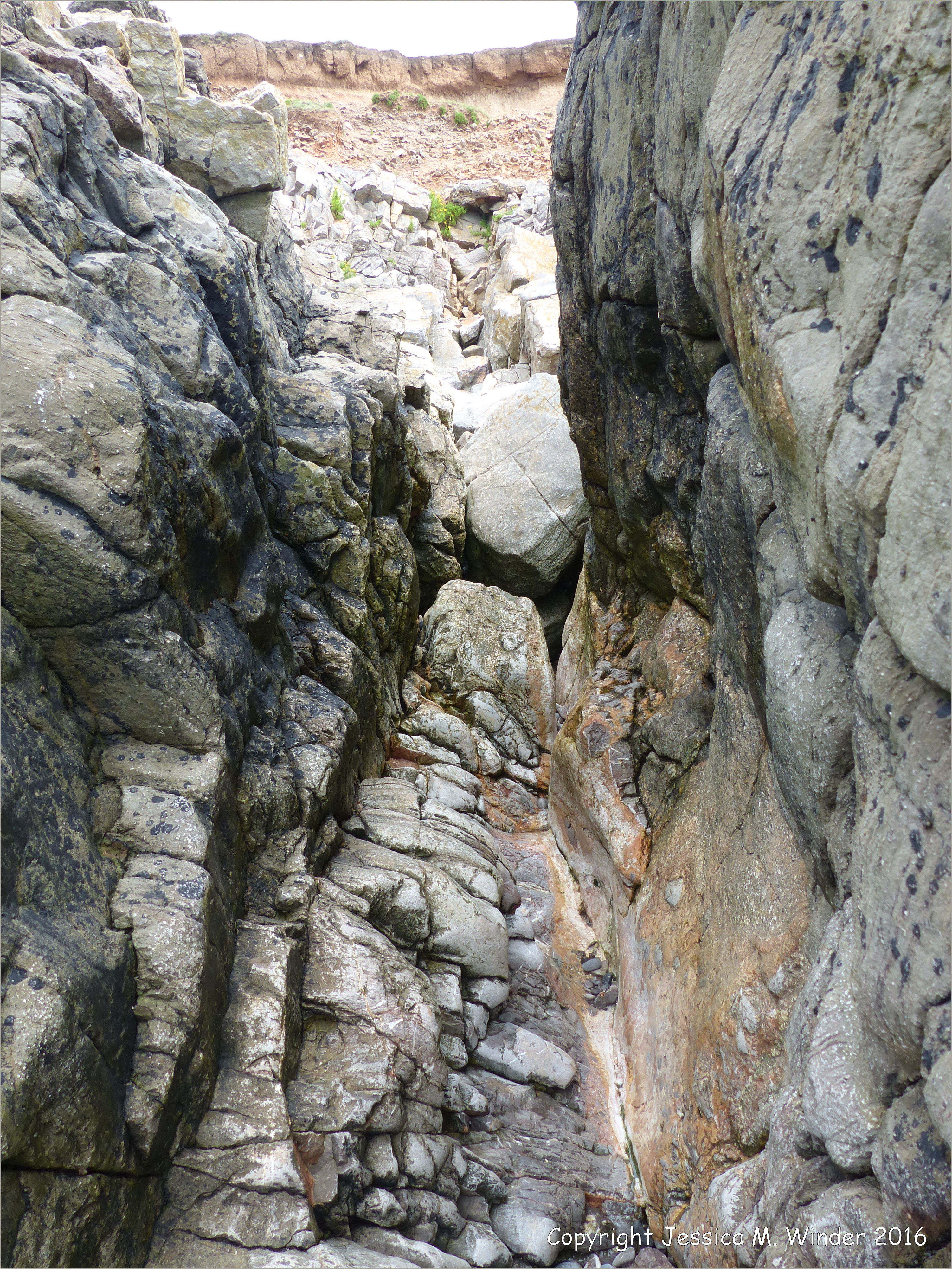 Water-worn Limestone (WHC1) 9 – Water-worn Carboniferous Black Rock Limestone Sub Group layers with gully on the Worms Head Causeway in Gower, South Wales.