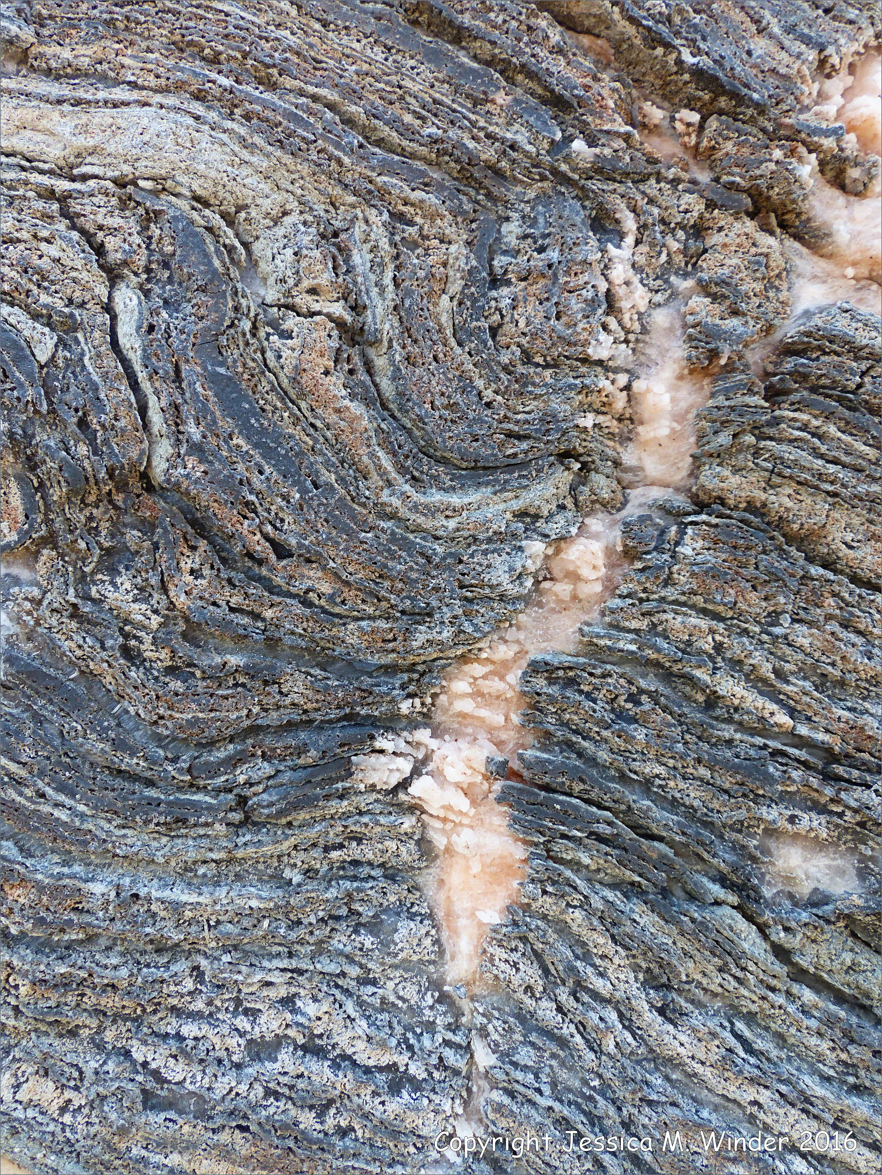 Fault Zone Rocks at Clarke Head 21 – Close-up of natural texture and pattern in one of the many rock types represented in the fault zone exposed on the shore at Clarke Head near Parrsboro in Nova Scotia, Canada.