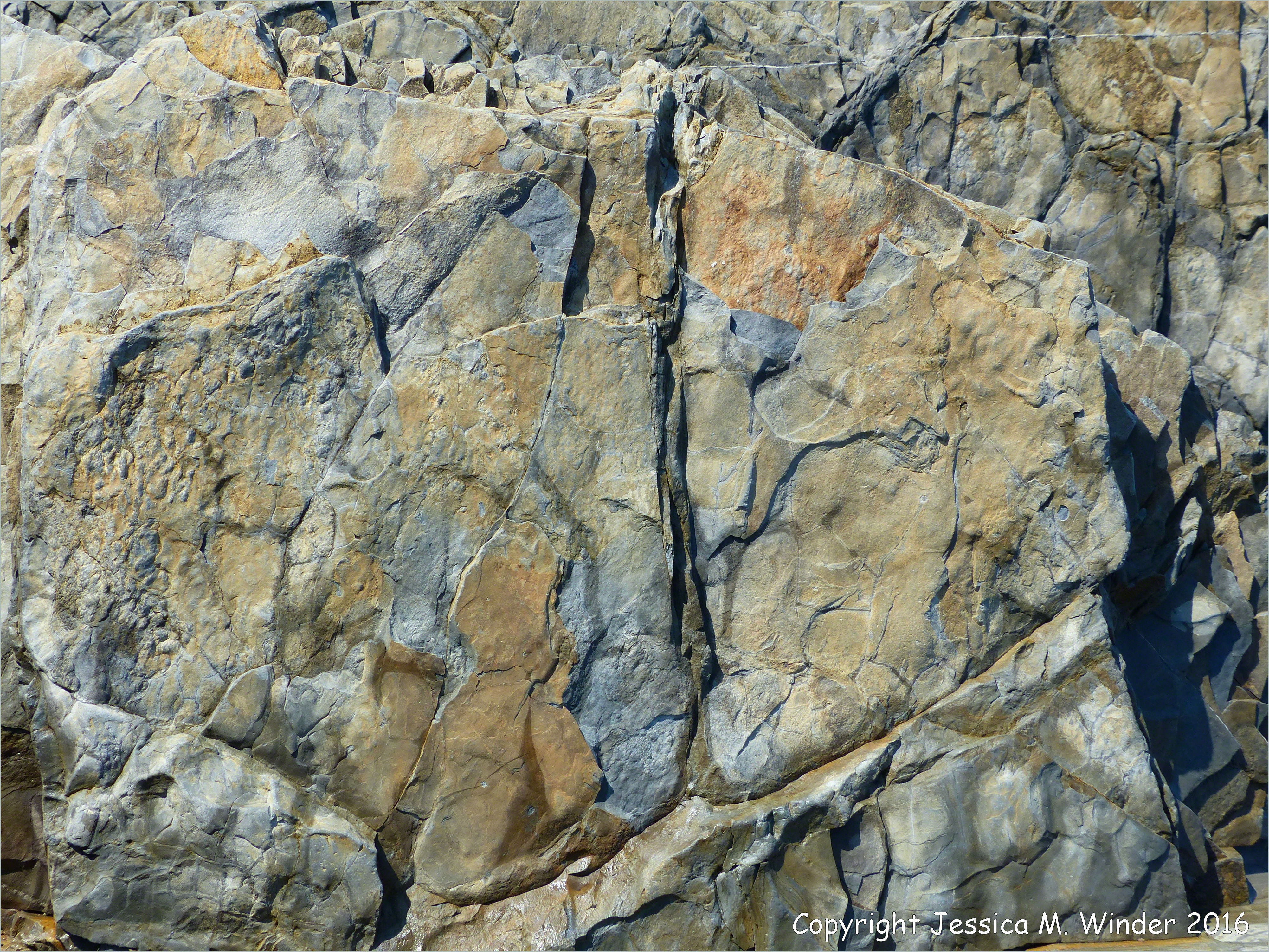 Fault Zone Rocks at Clarke Head 29 – Close-up of natural texture and pattern in one of the many rock types represented in the fault zone exposed on the shore at Clarke Head near Parrsboro in Nova Scotia, Canada.