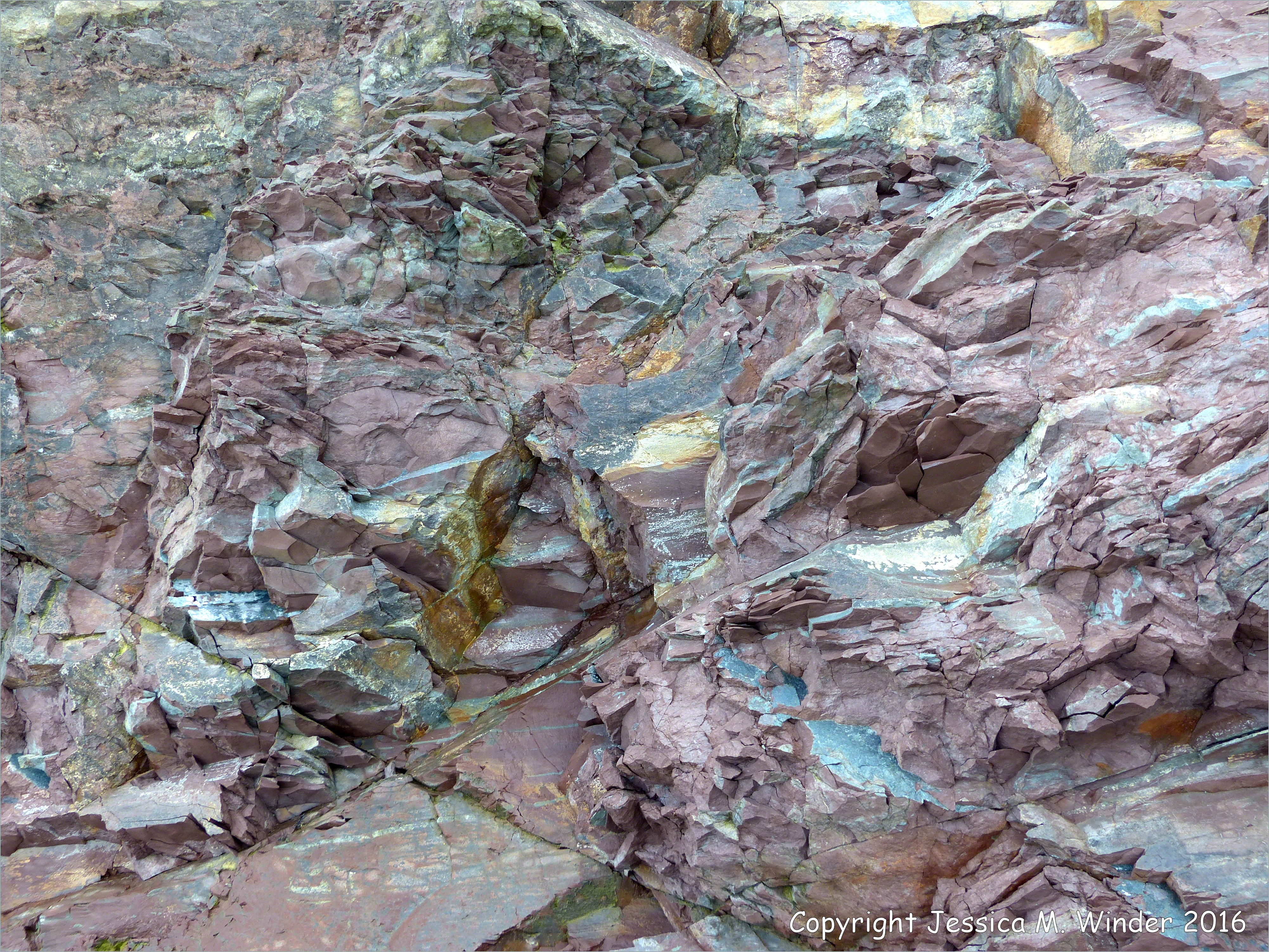 Fault Zone Rocks at Clarke Head 33 – Close-up of natural texture and pattern in one of the many rock types represented in the fault zone exposed on the shore at Clarke Head near Parrsboro in Nova Scotia, Canada.