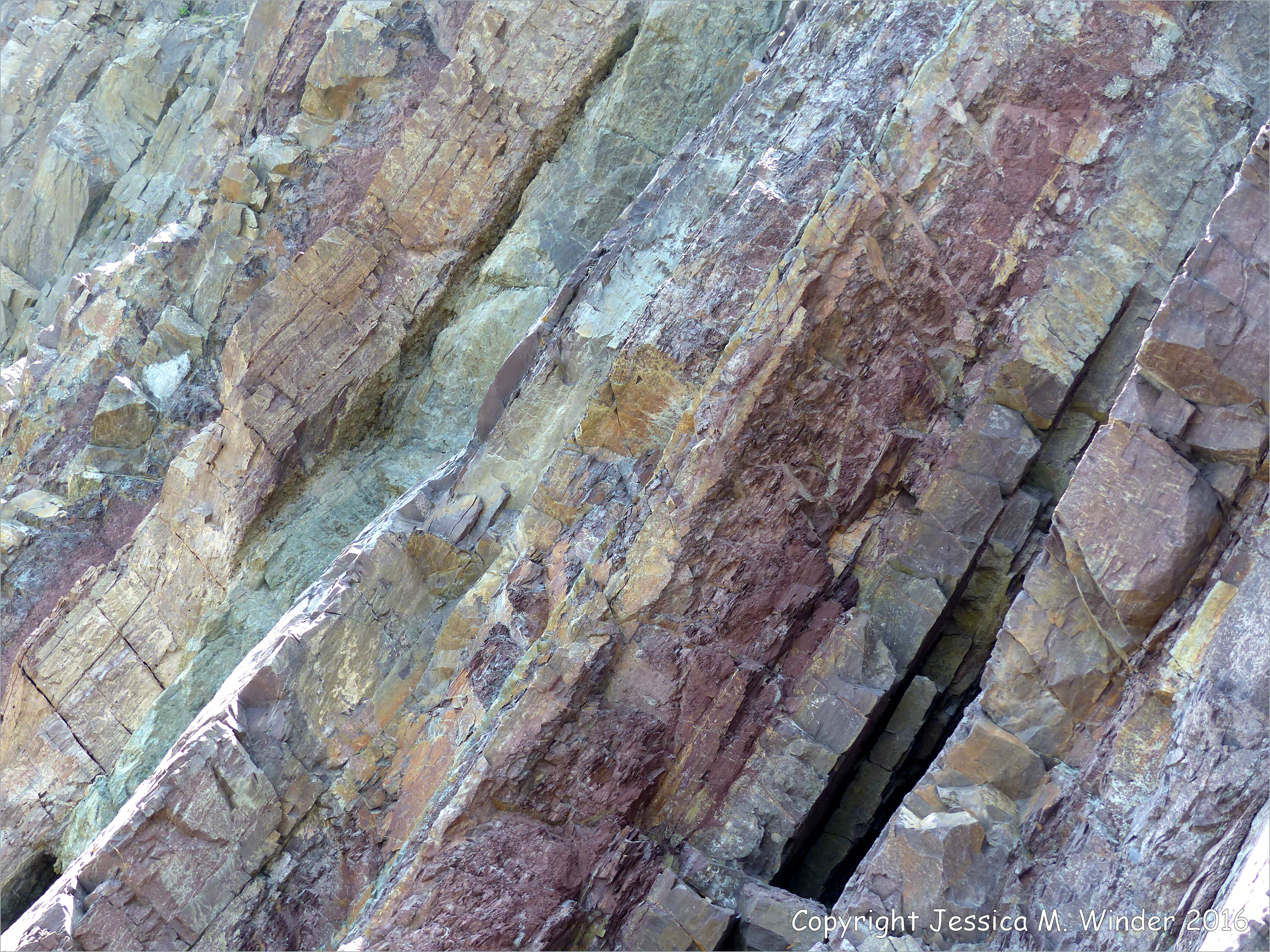 Fault Zone Rocks at Clarke Head 35 – Close-up of natural texture and pattern in one of the many rock types represented in the fault zone exposed on the shore at Clarke Head near Parrsboro in Nova Scotia, Canada.