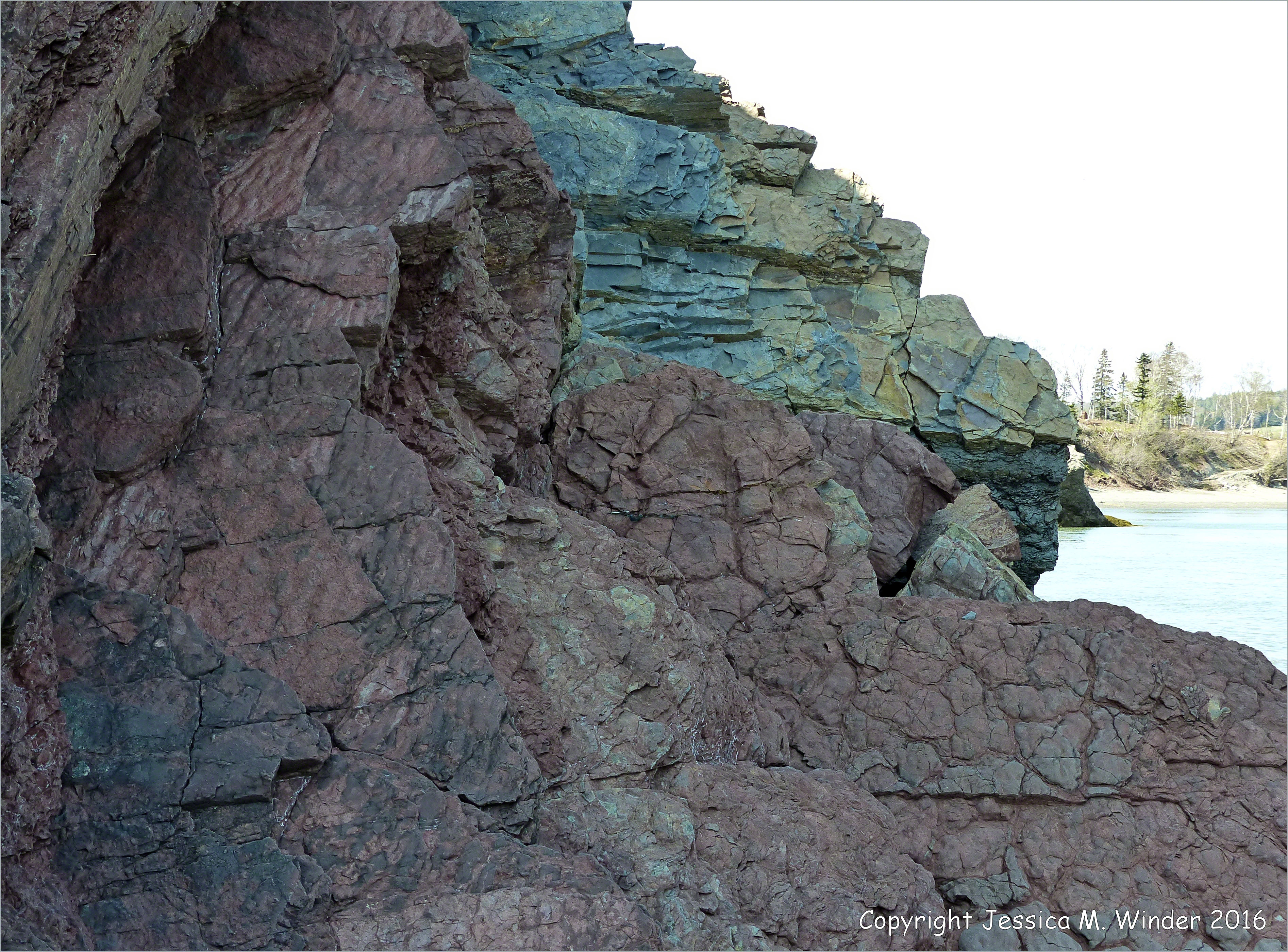 Fault Zone Rocks at Clarke Head 36 – Close-up of natural texture and pattern in one of the many rock types represented in the fault zone exposed on the shore at Clarke Head near Parrsboro in Nova Scotia, Canada.
