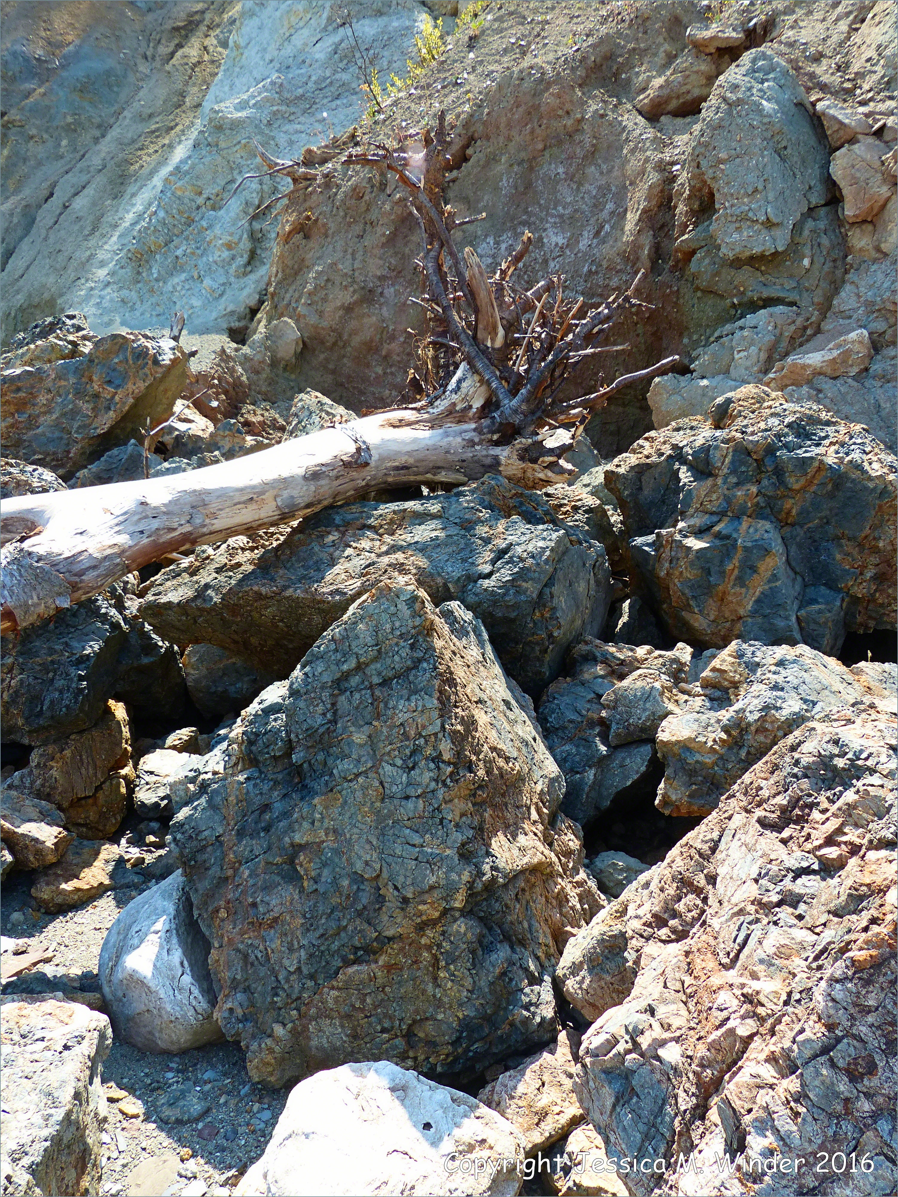 Fault Zone Rocks at Clarke Head 73 – Boulders on the beach from the many types represented in the fault zone at Clarke Head, Nova Scotia, Canada.