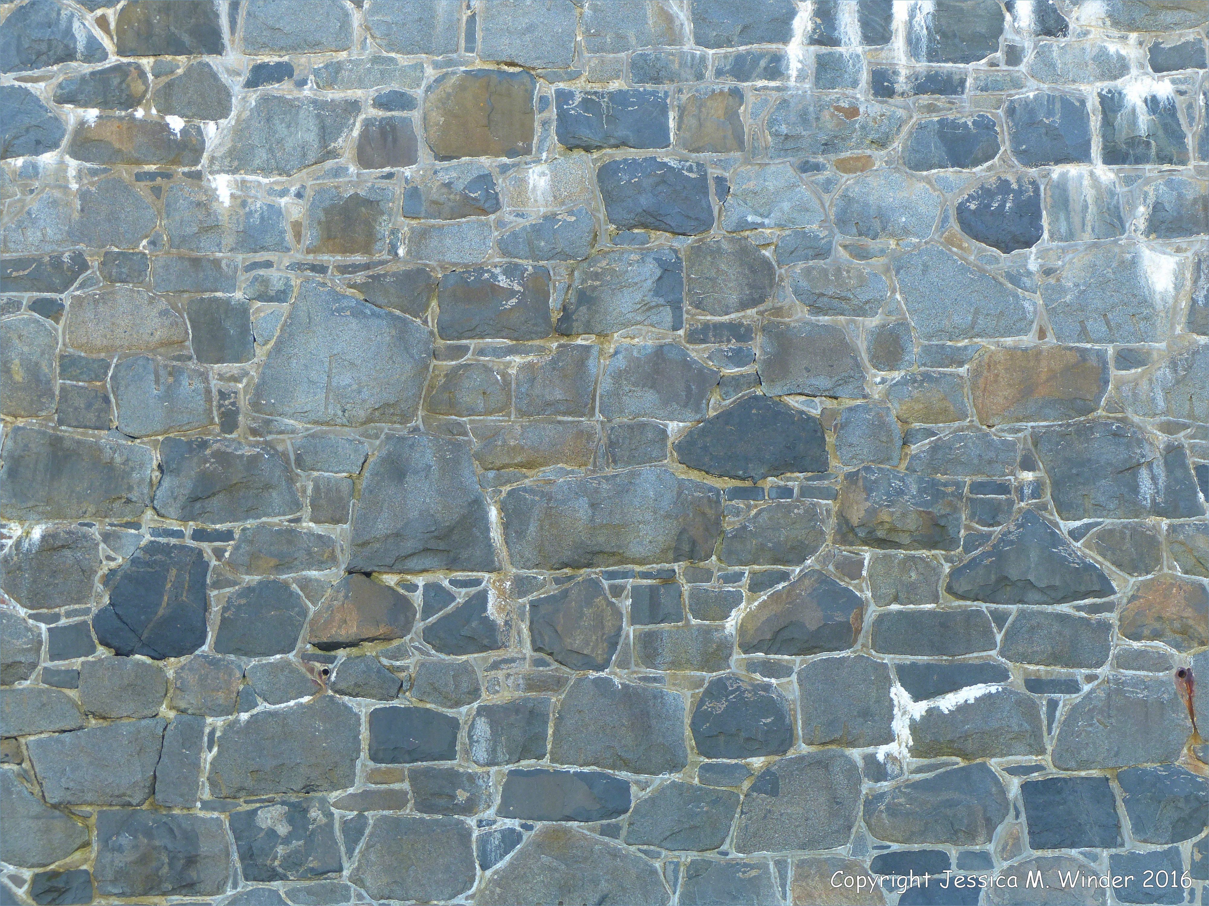 A Walk at Rocquaine Bay 6 – Close-up of the sea wall of local stone at the southern end of Rocquaine Bay in the Channel Island of Guernsey