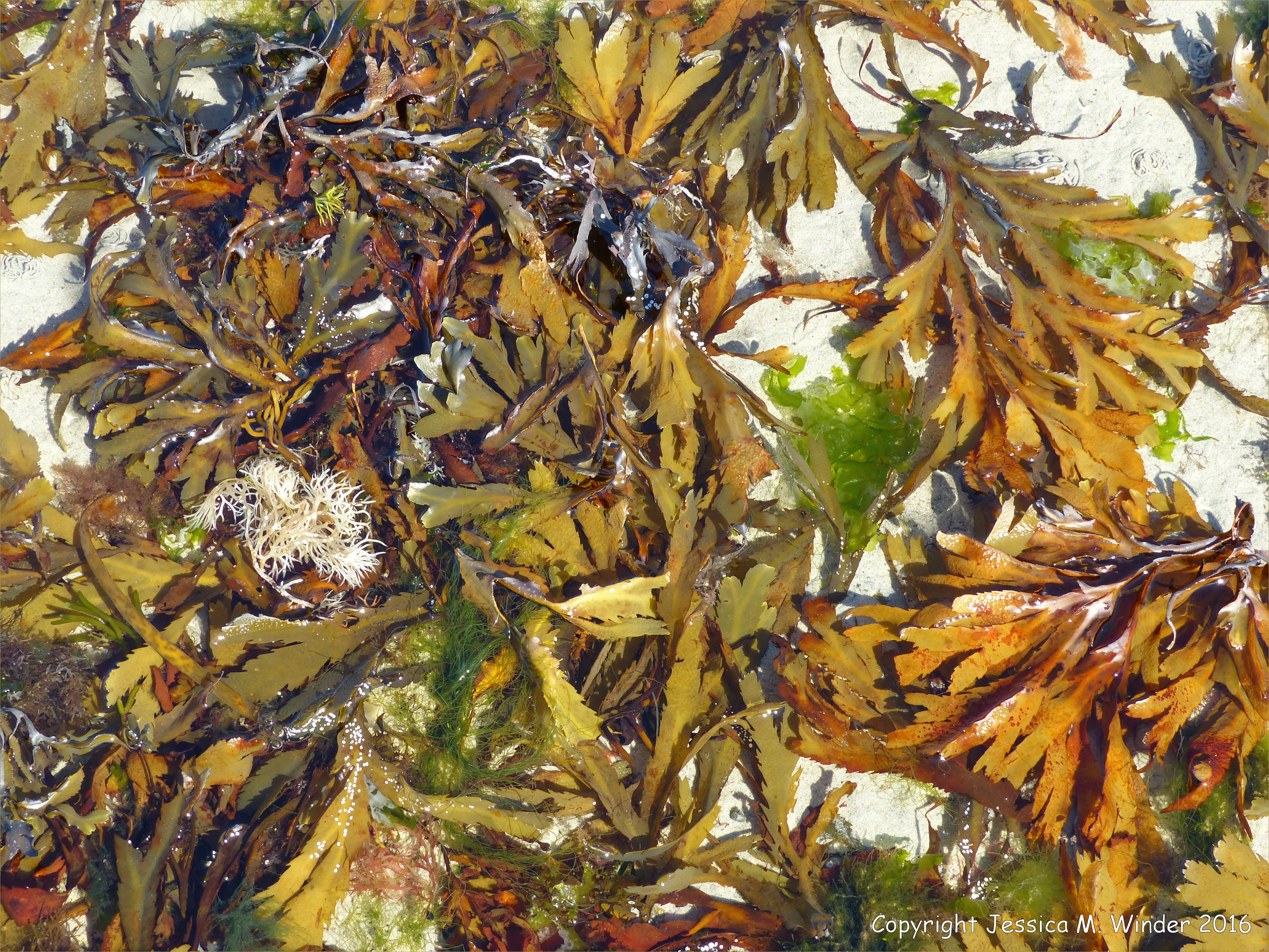 A Walk at Rocquaine Bay 14 – Common British seaweeds (including Fucus serratus) at Rocquaine Bay on the west coast of the Channel Island of Guernsey