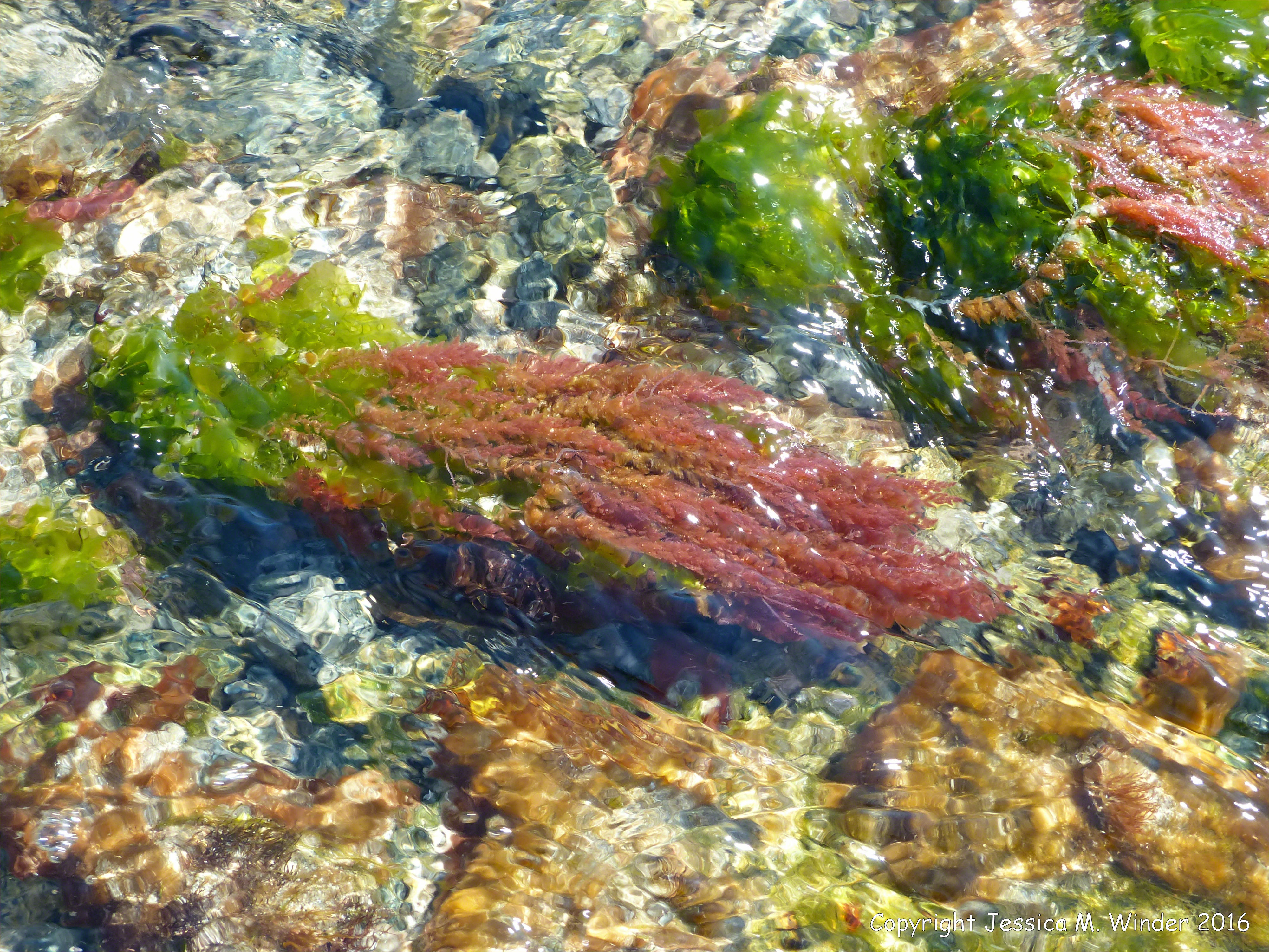 A Walk at Rocquaine Bay 51 – Seaweeds and stones under clear flowing water at Rocquaine Bay on the west coast of the Channel Island of Guernsey