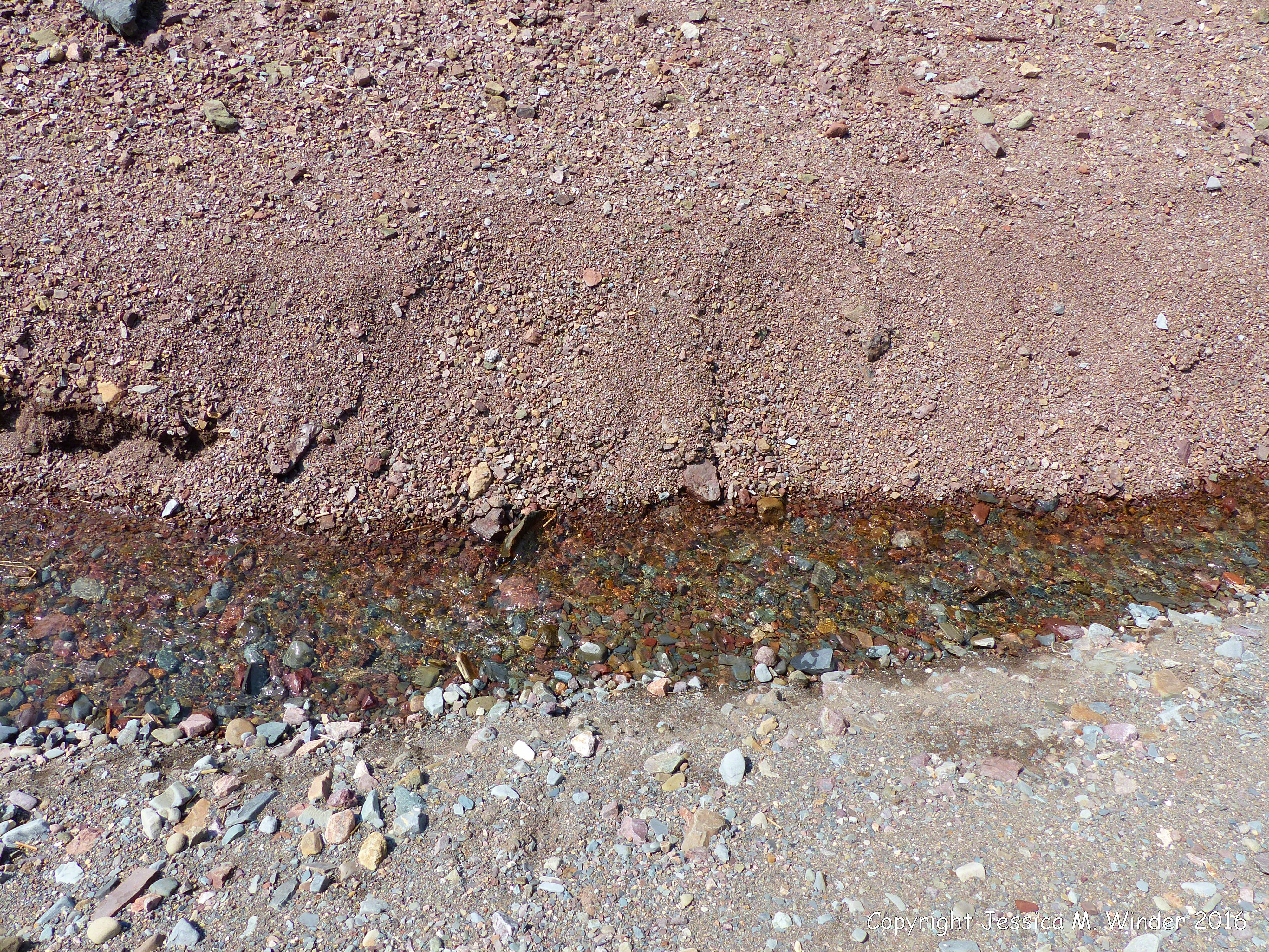 Rocks at Wasson Bluff 6 – Stream across the coloured beach pebbles at Wasson Bluff, near Parrsboro, Nova Scotia, Canada.