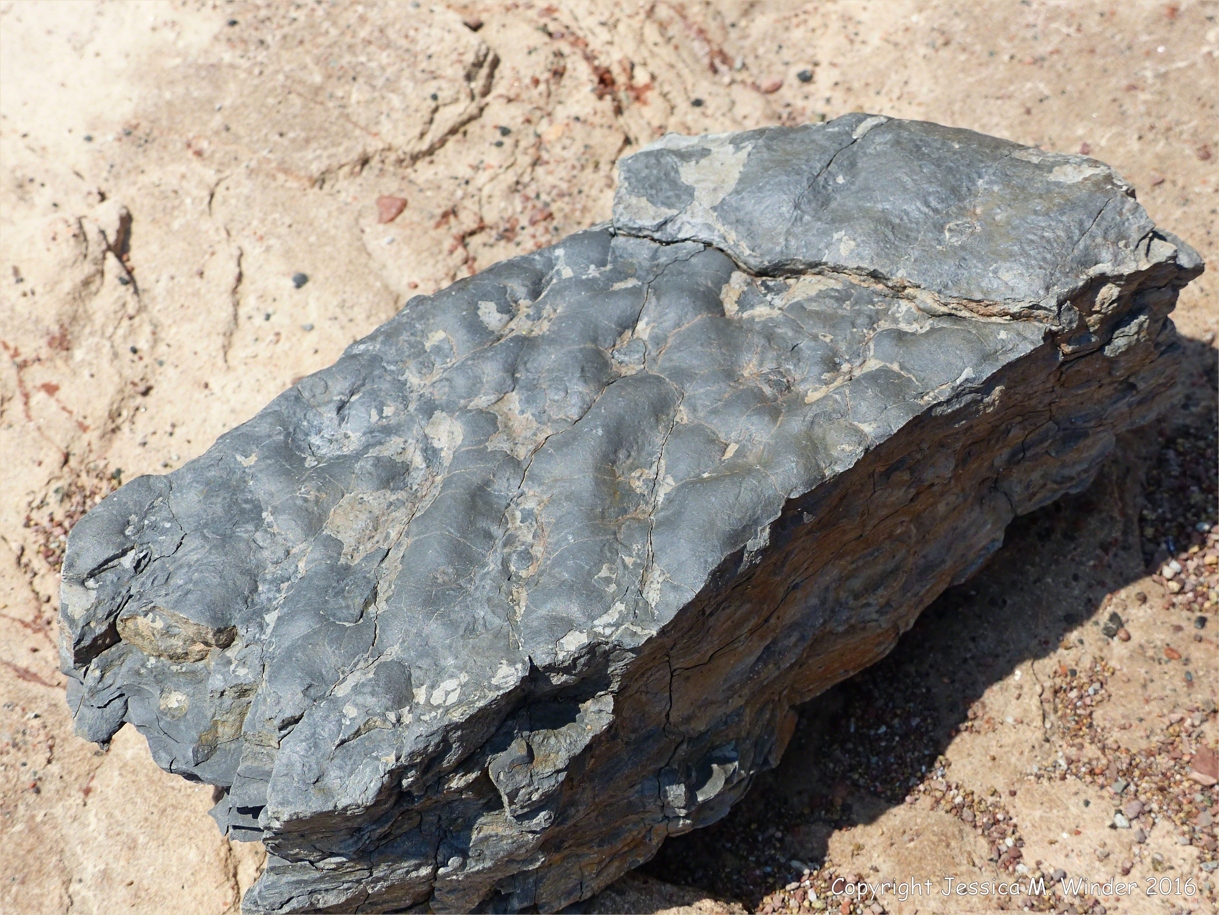 Rocks at Wasson Bluff 34 – Rock from the Triassic to Jurassic Blomidon Formation at Wasson Bluff, near Parrsboro, Nova Scotia, Canada. (All rock identifications are tentative and subject to verification.)