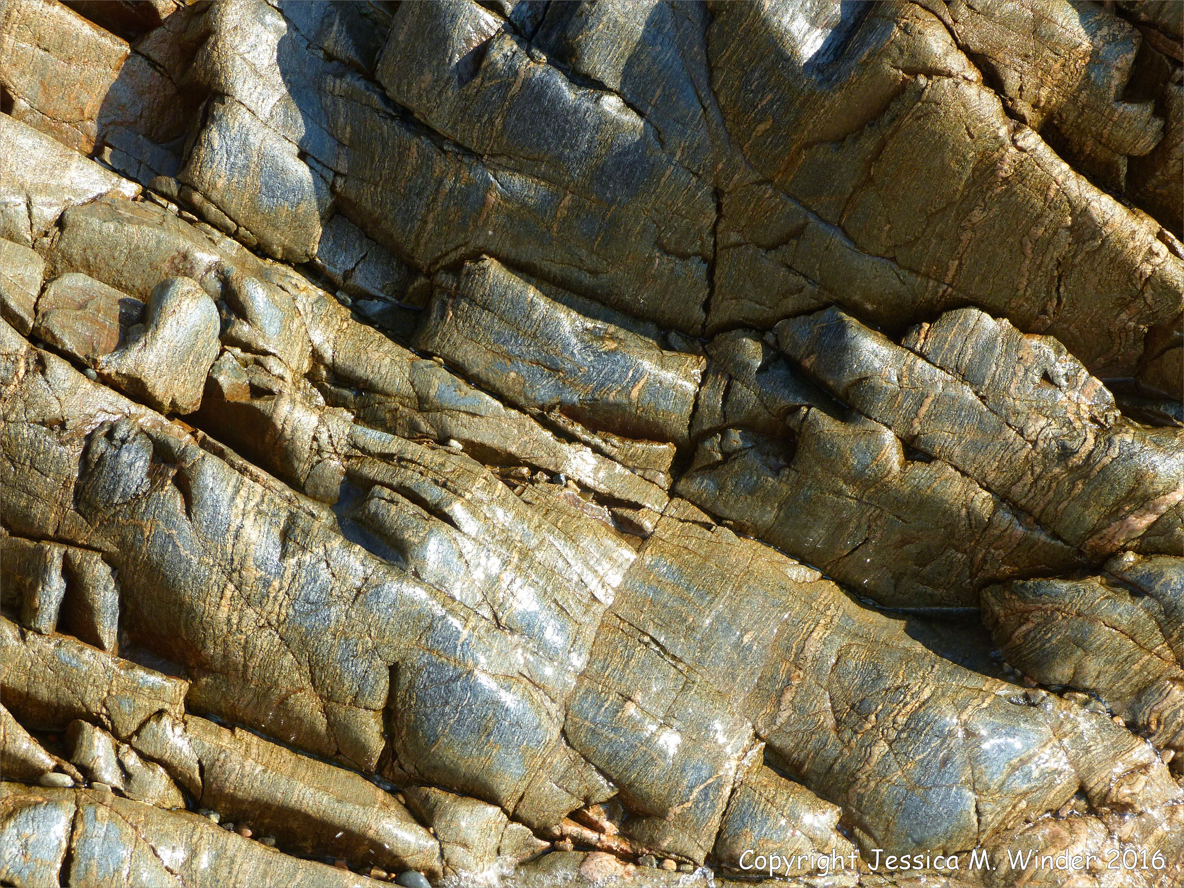 Gneiss Rocks and Metasediments at Havelet 6 – Metamorphic rock textures and patterns at Havelet Bay, Guernsey, Channel Islands.
