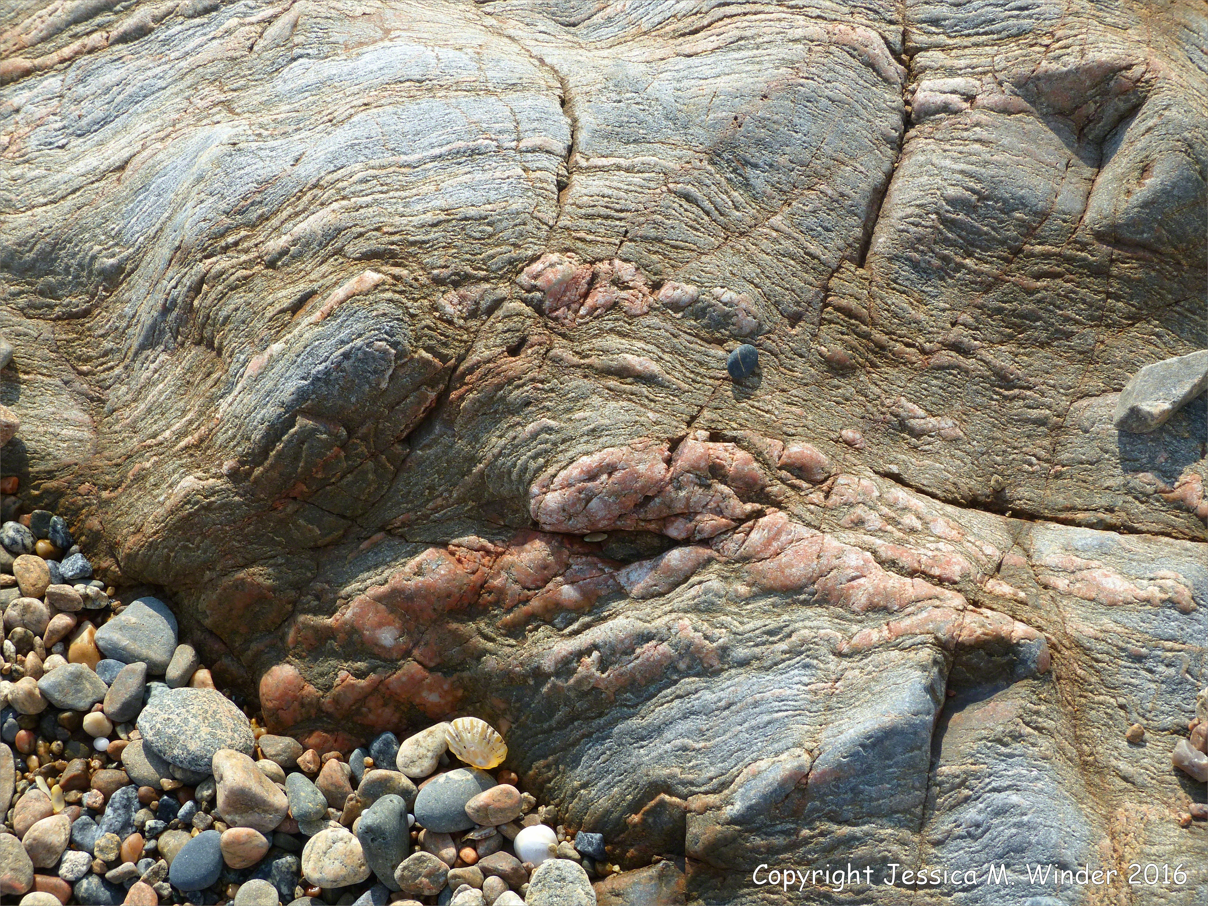 Gneiss Rocks and Metasediments at Havelet 11 – Metamorphic rock textures and patterns at Havelet Bay, Guernsey, Channel Islands.