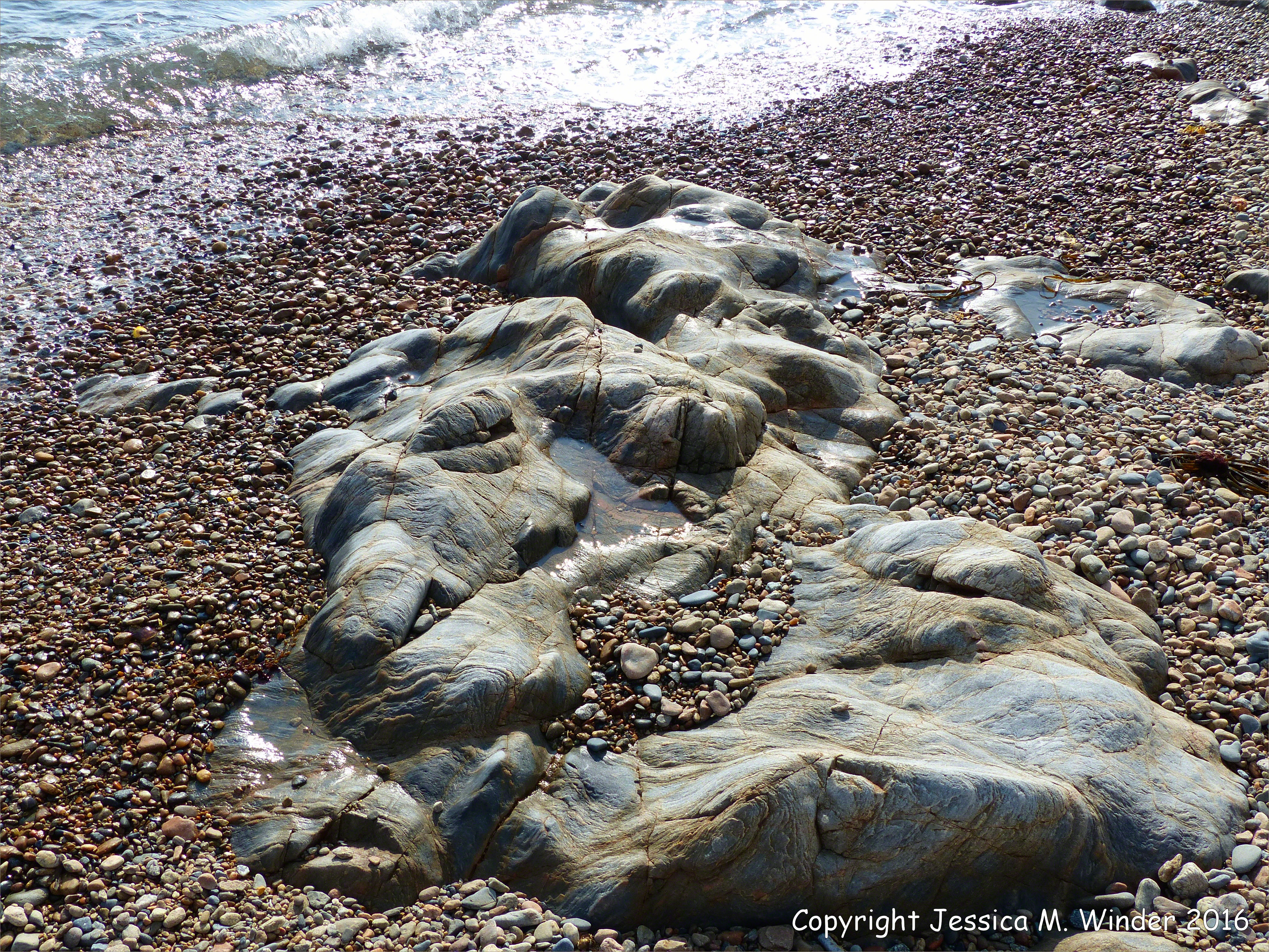 Gneiss Rocks and Metasediments at Havelet 12 – Metamorphic rock textures and patterns at Havelet Bay, Guernsey, Channel Islands.
