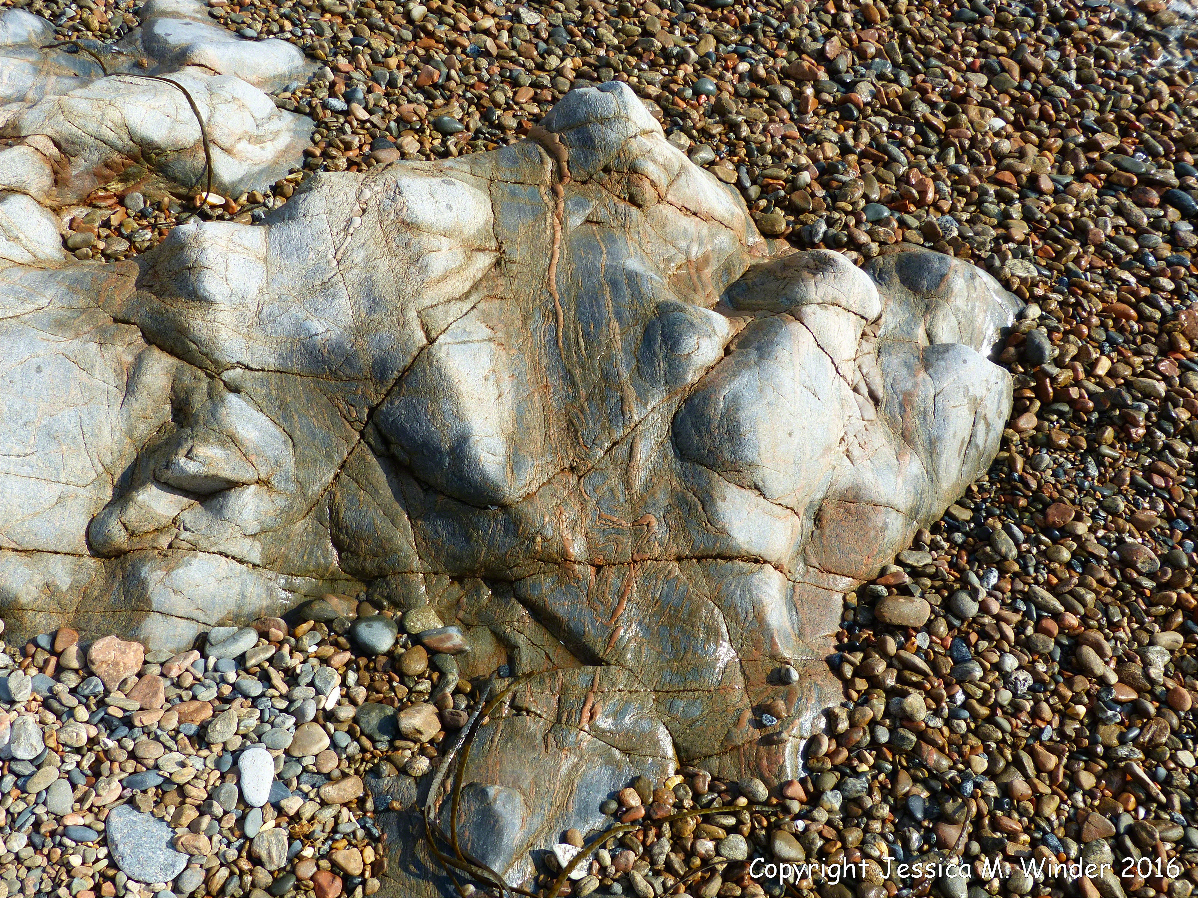 Gneiss Rocks and Metasediments at Havelet 14 – Metamorphic rock textures and patterns at Havelet Bay, Guernsey, Channel Islands.