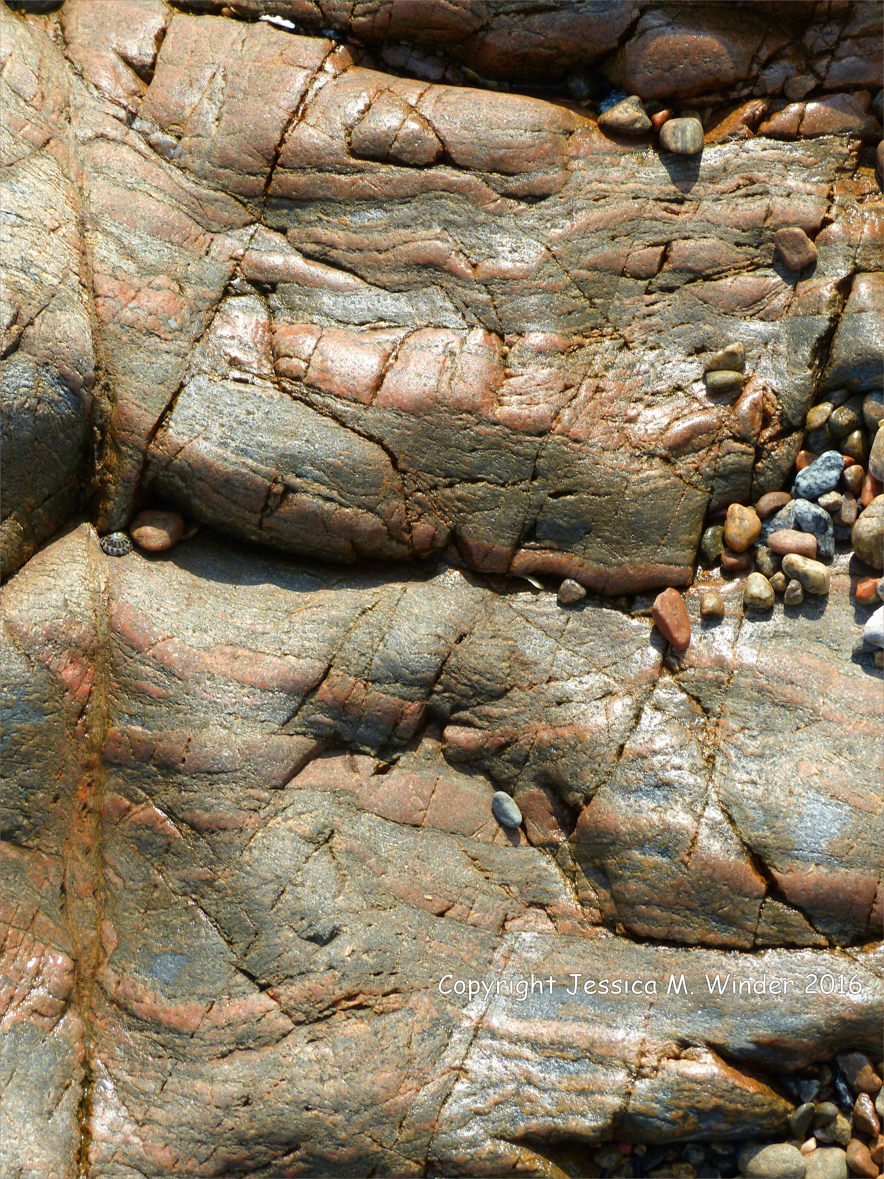 Gneiss Rocks and Metasediments at Havelet 18 – Metamorphic rock textures and patterns at Havelet Bay, Guernsey, Channel Islands.