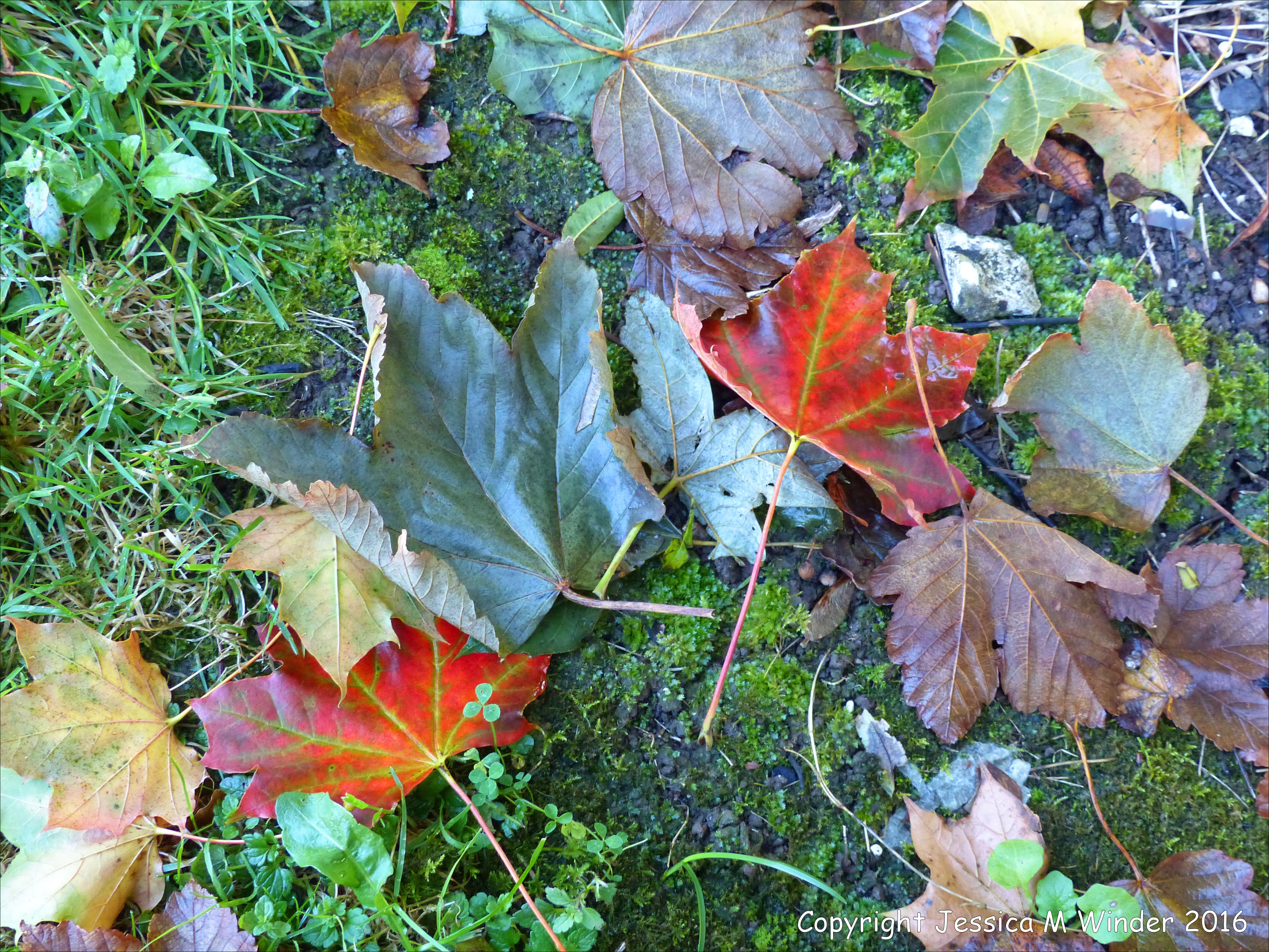 October Leaves 10 – The beginning of autumn leaf fall, with brightly coloured and sometimes sunlit leaves. Photographed in and around a Dorset hedgerow in England.