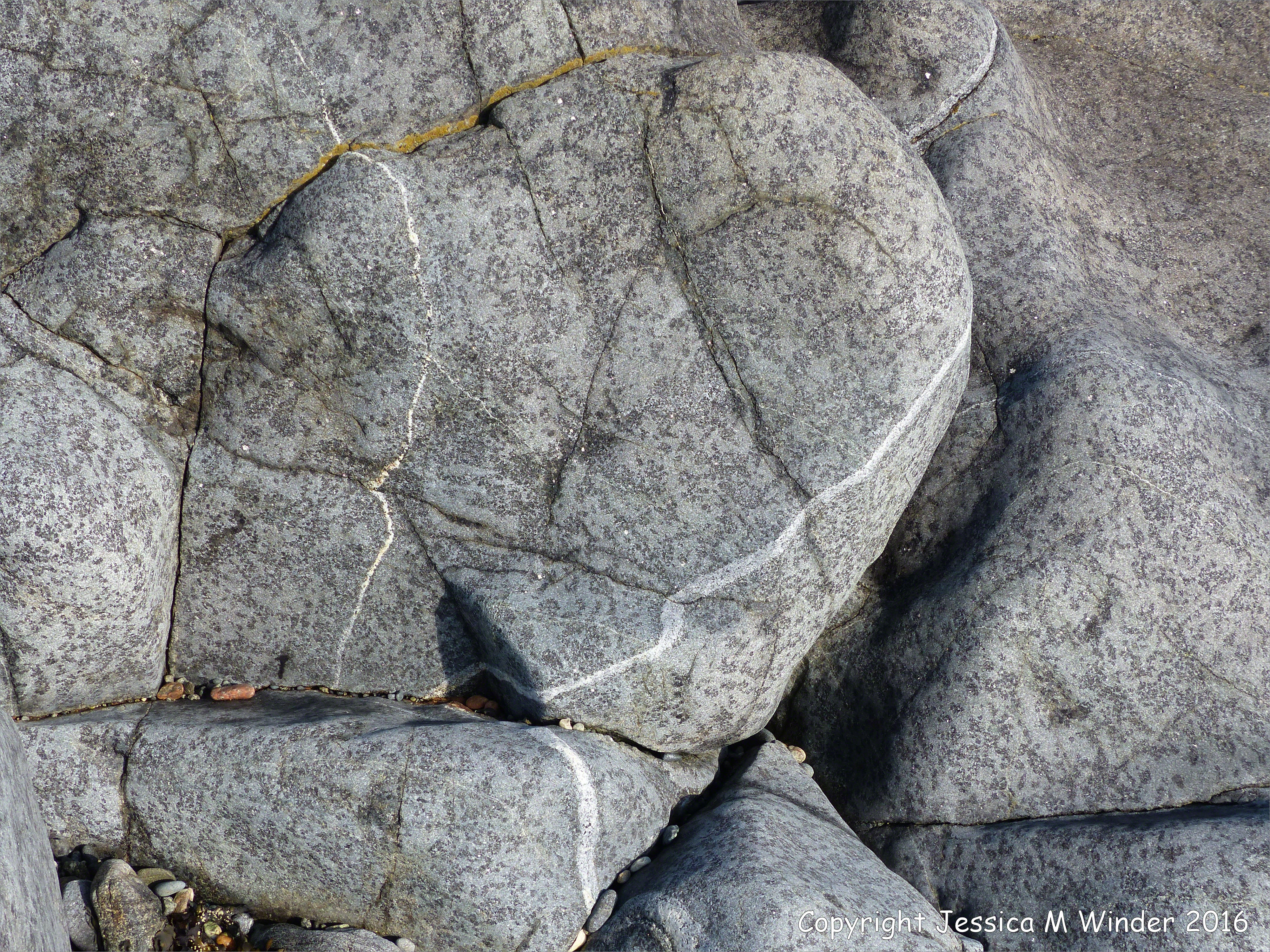 Rocks at Spur Bay 7 – Close-up of St Peter Port Gabbro (also called horneblende gabbro or “bird’s eye” gabbro) at Spur Bay on the Channel Island of Guernsey