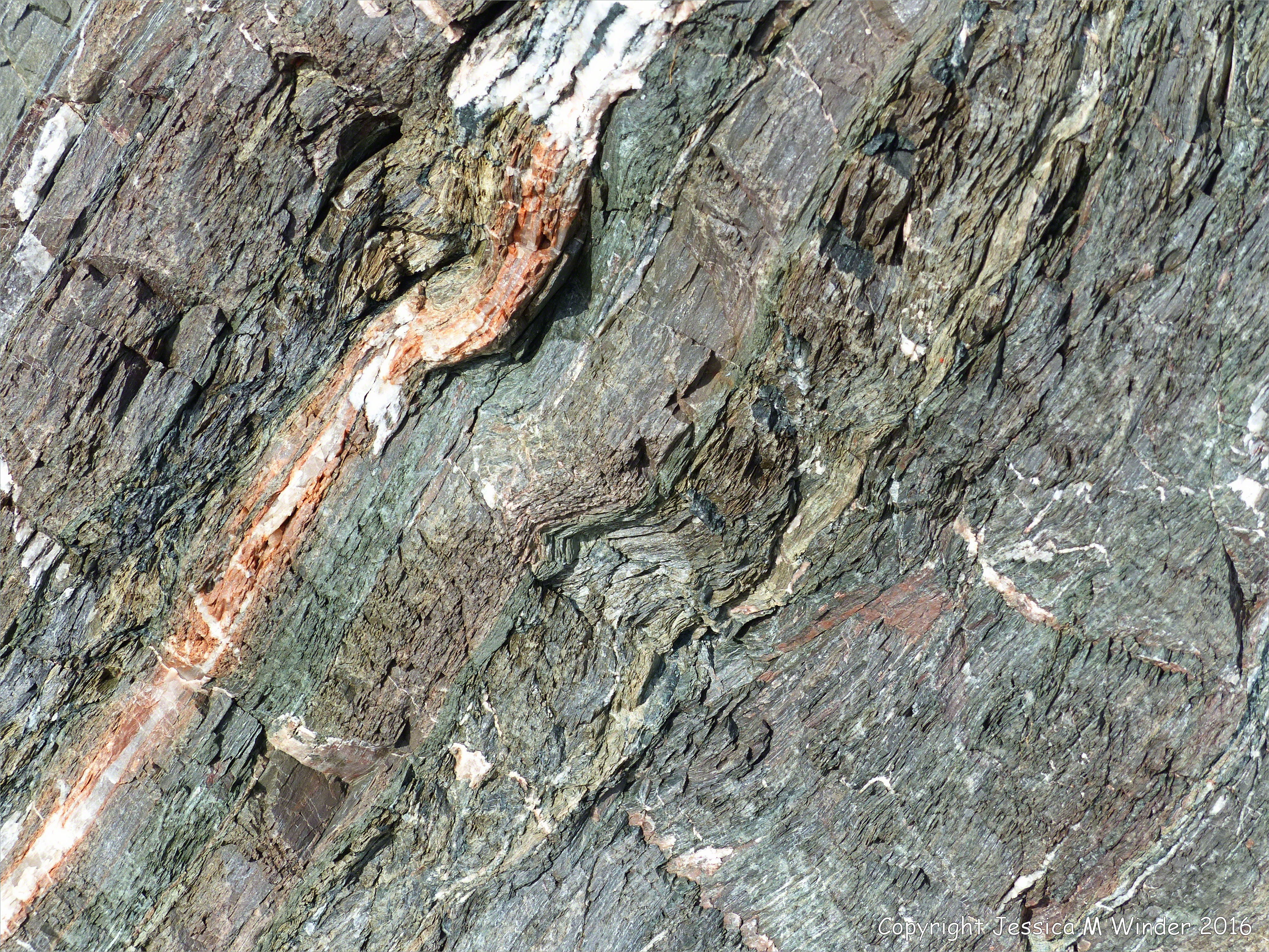 Rocks at Presqu’ile 17 – Phyllite rock in cross-section view on the shore at Presqu’ile near Pillar Rock along the Cabot Trail in Cape Breton Island, Nova Scotia, Canada.