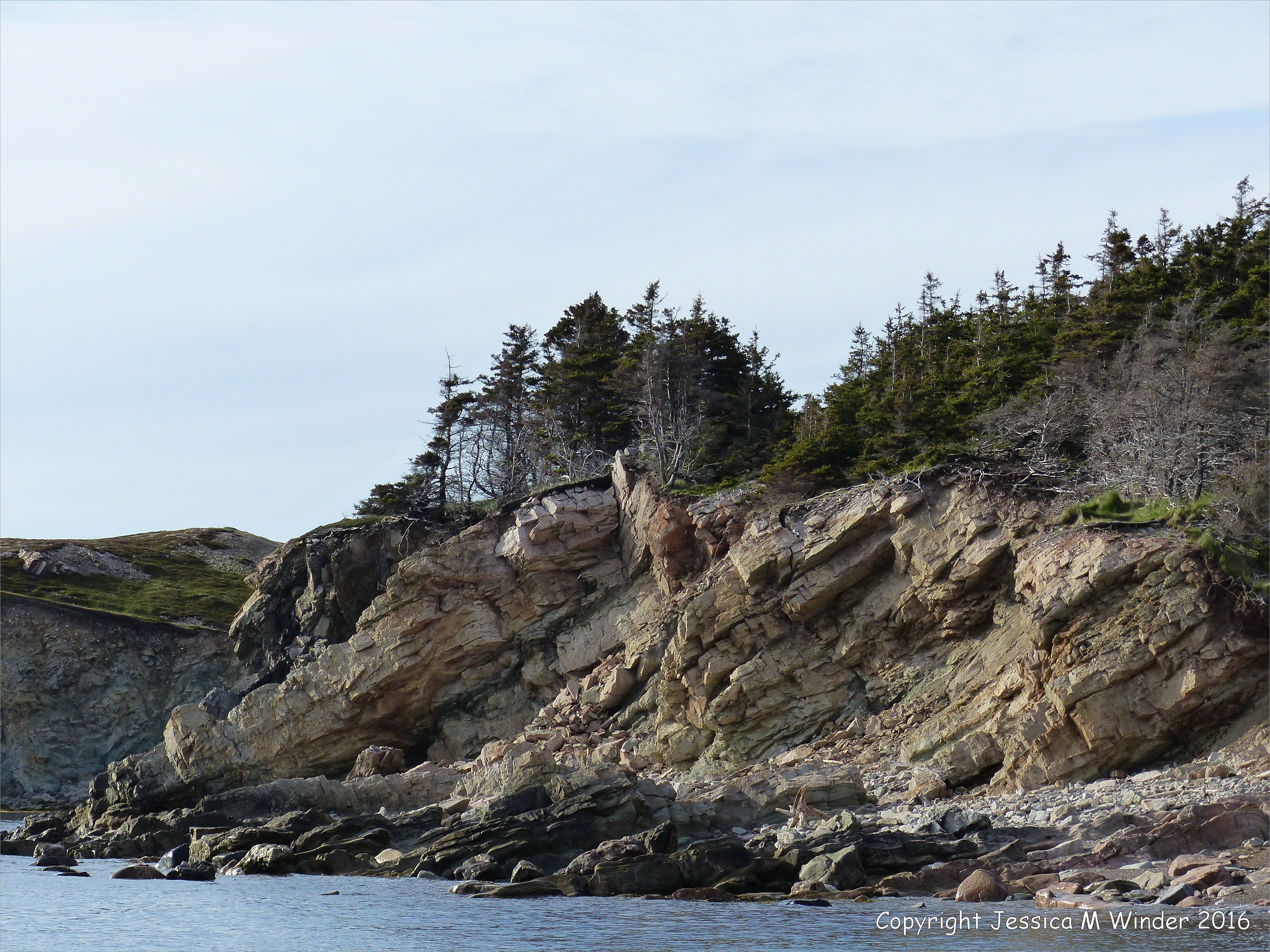 Rocks at Presqu’ile 27 – Carboniferous sandstone strata in cliffs at Presqu’ile on Cape Breton Island, Nova Scotia, Canada.