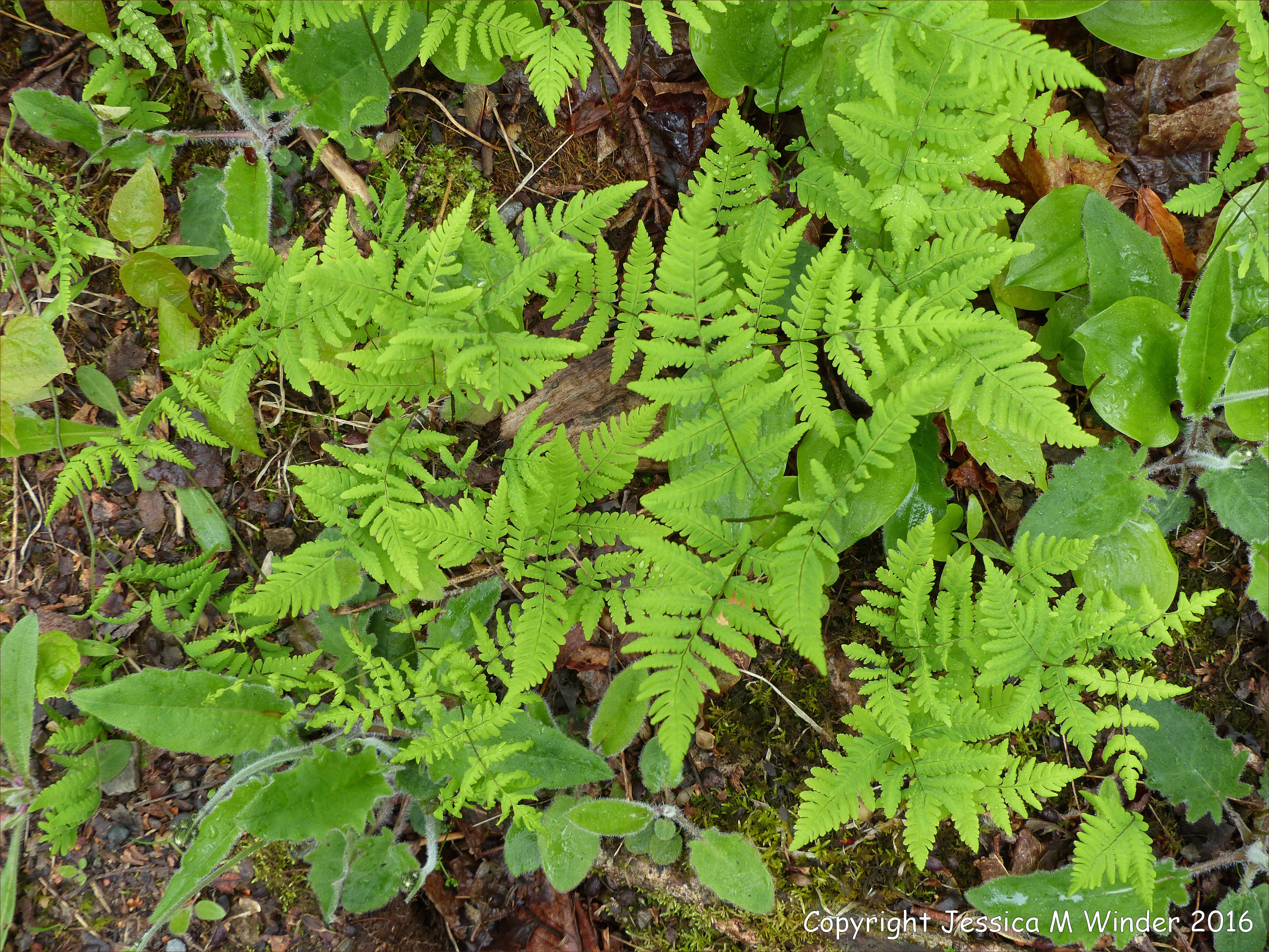 The Lone Shieling 1 – Spring ground cover plants in an ancient hardwood forest at The Lone Shieling in Grande Anse Valley on the Cabot Trail in the Cape Breton Highlands National Park, Nova Scotia, Canada. Twenty species of fern are recorded at this site.
