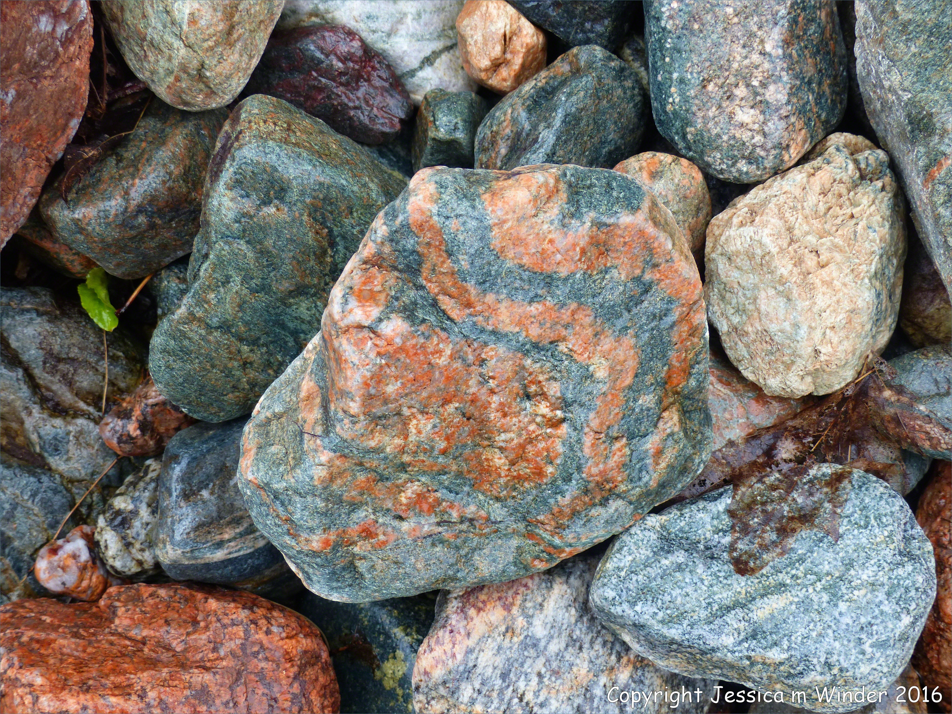 The Lone Shieling 28 – Melting snow in the mountains brings floods that wash away the soil and deposit rocks from higher upstream. The exposed river bed in spring reveals stones of many types including igneous and metamorphic rocks from the Cape Breton Highlands to the south, and some a billion years old from the Blair River Inlier. Cabot Trail, Cape Breton Highlands National Park, Canada.