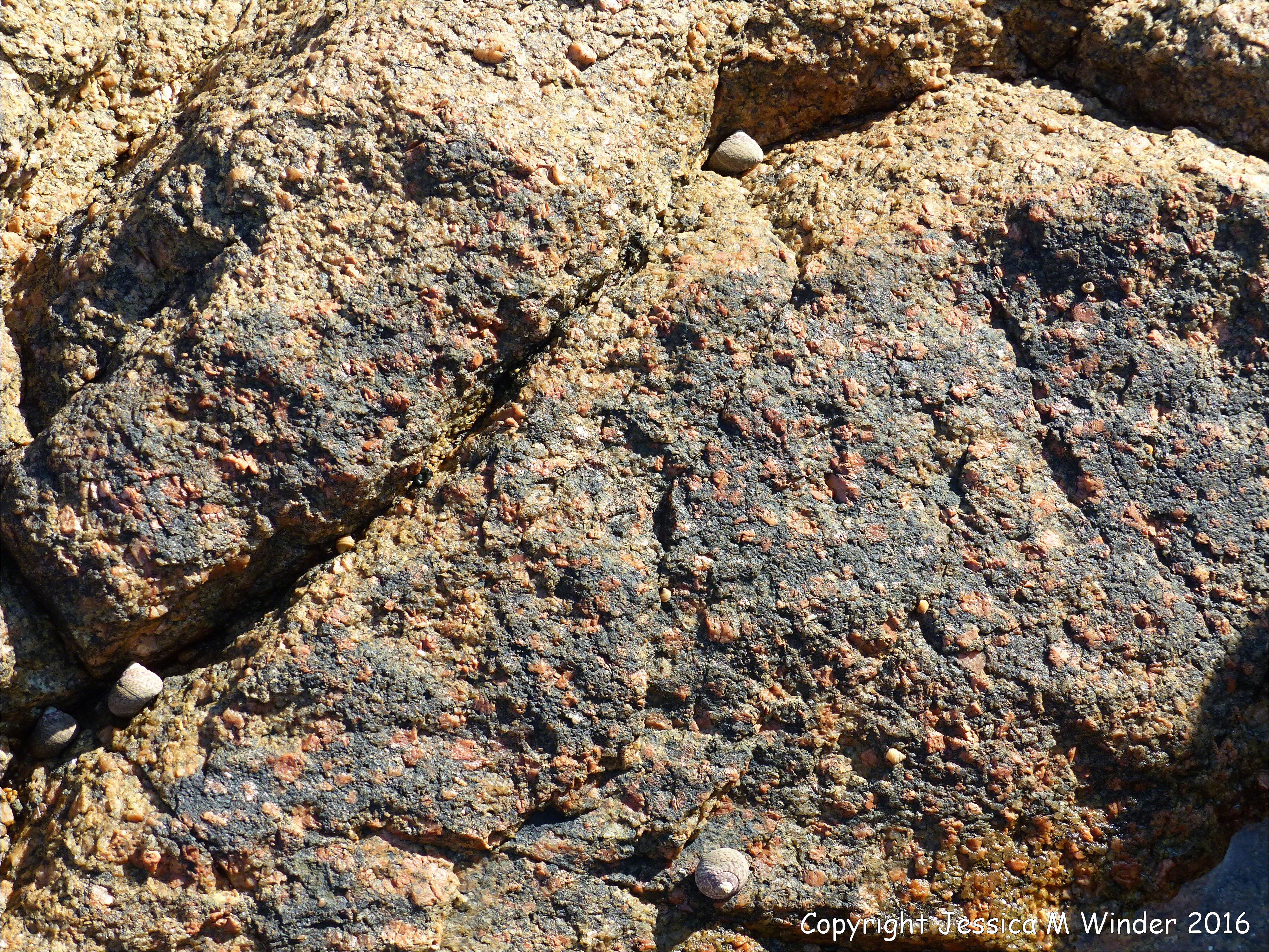 Cobo Bay 17 Cobo Bay 17 – Rock close-up of Granite-Diorite Marginal Facies at Cobo Bay on the Channel Island of Guernsey.