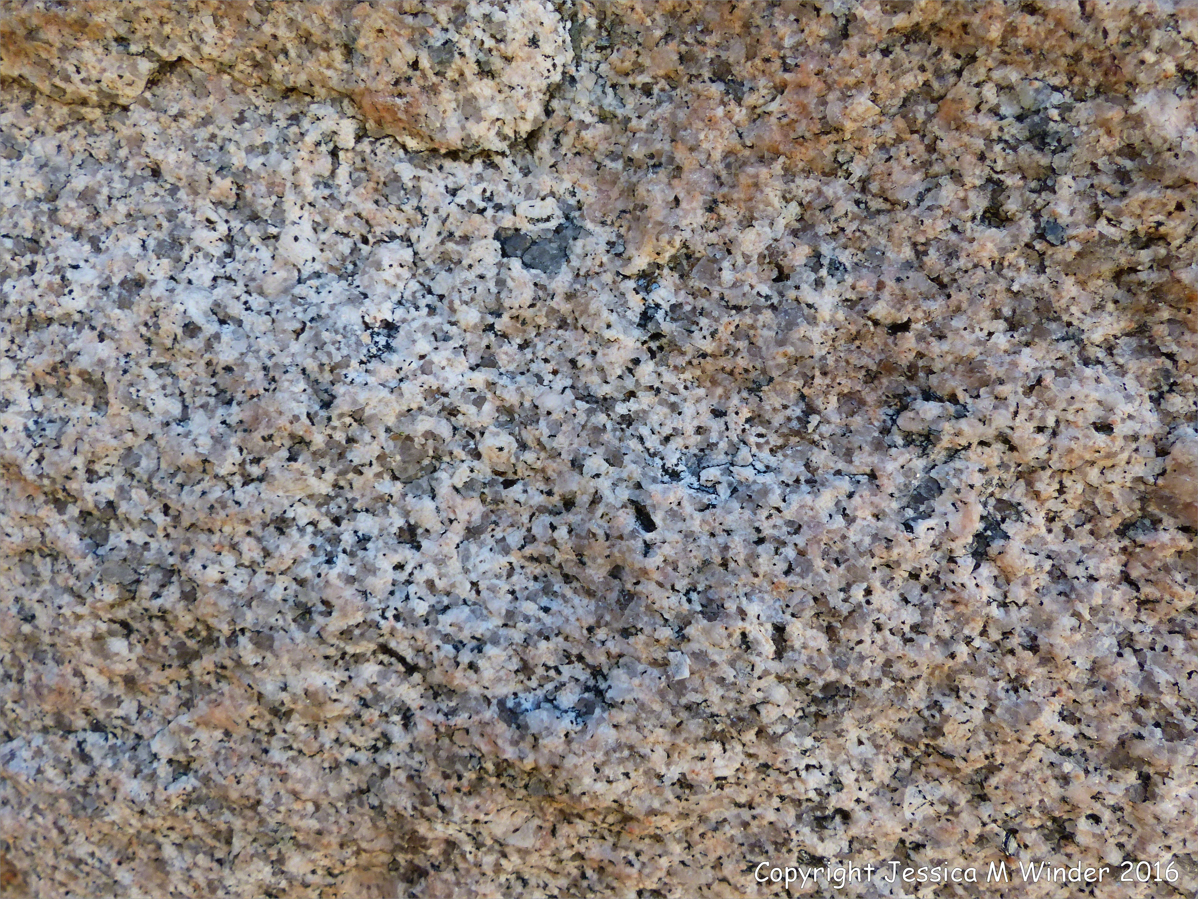 Rock Texture & Pattern at White Point 32 – Macro-photograph of texture and pattern in Devonian plutonic rocks used as rip-rap at White Point harbour in Cape Breton Island, Nova Scotia, Canada, on the Cabot Trail. These rip-rap boulders come from the Black Brook Granitic Suite and include granitic gneiss intruded into biotite schist .