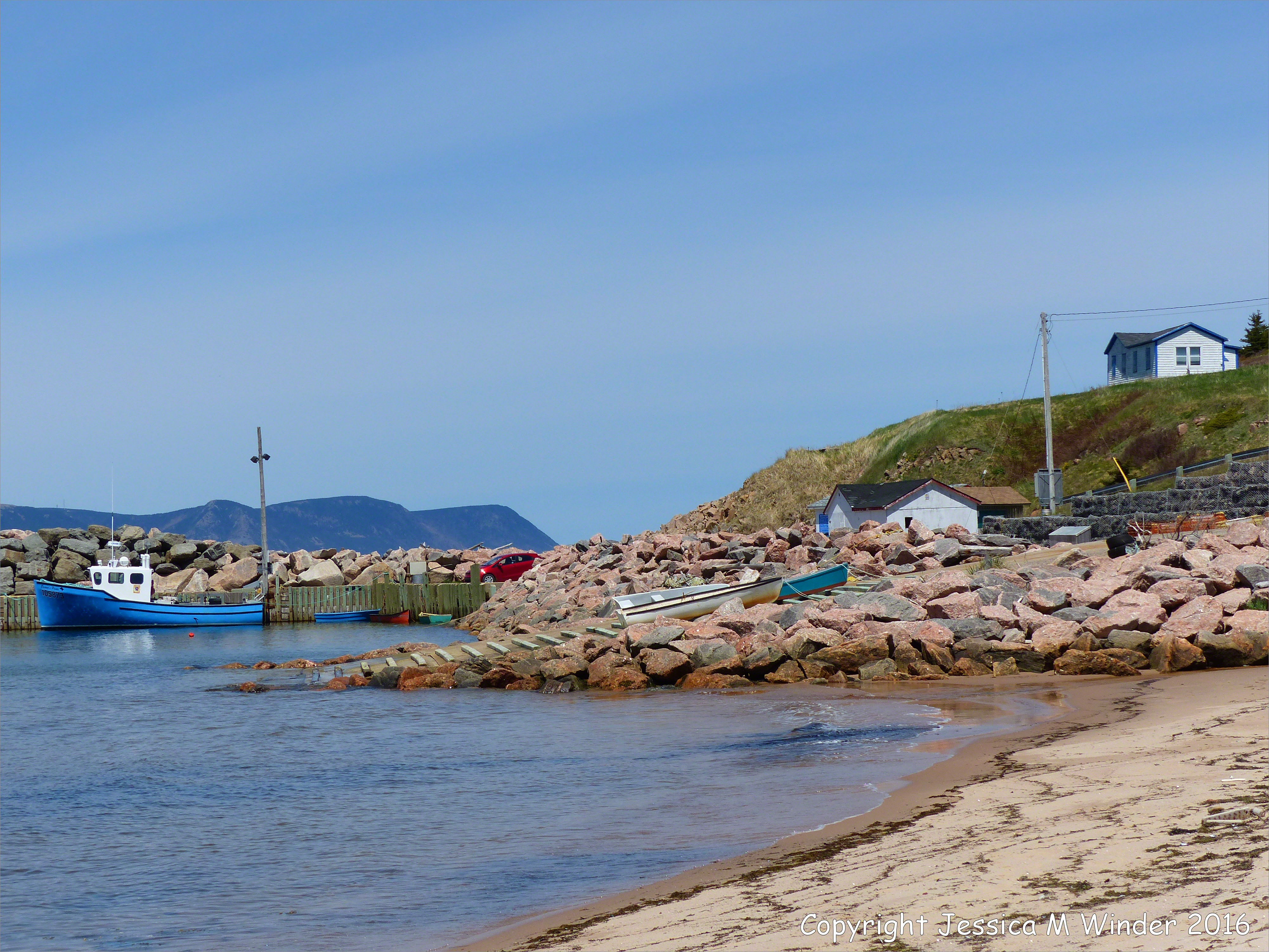 Rock Texture & Pattern at White Point 34 – View of the harbour at White Pont on the Cabot Trail in Cape Breton Island, Nova Scotia, Canada, showing rip-rap boulders of local granitic pluton rock.