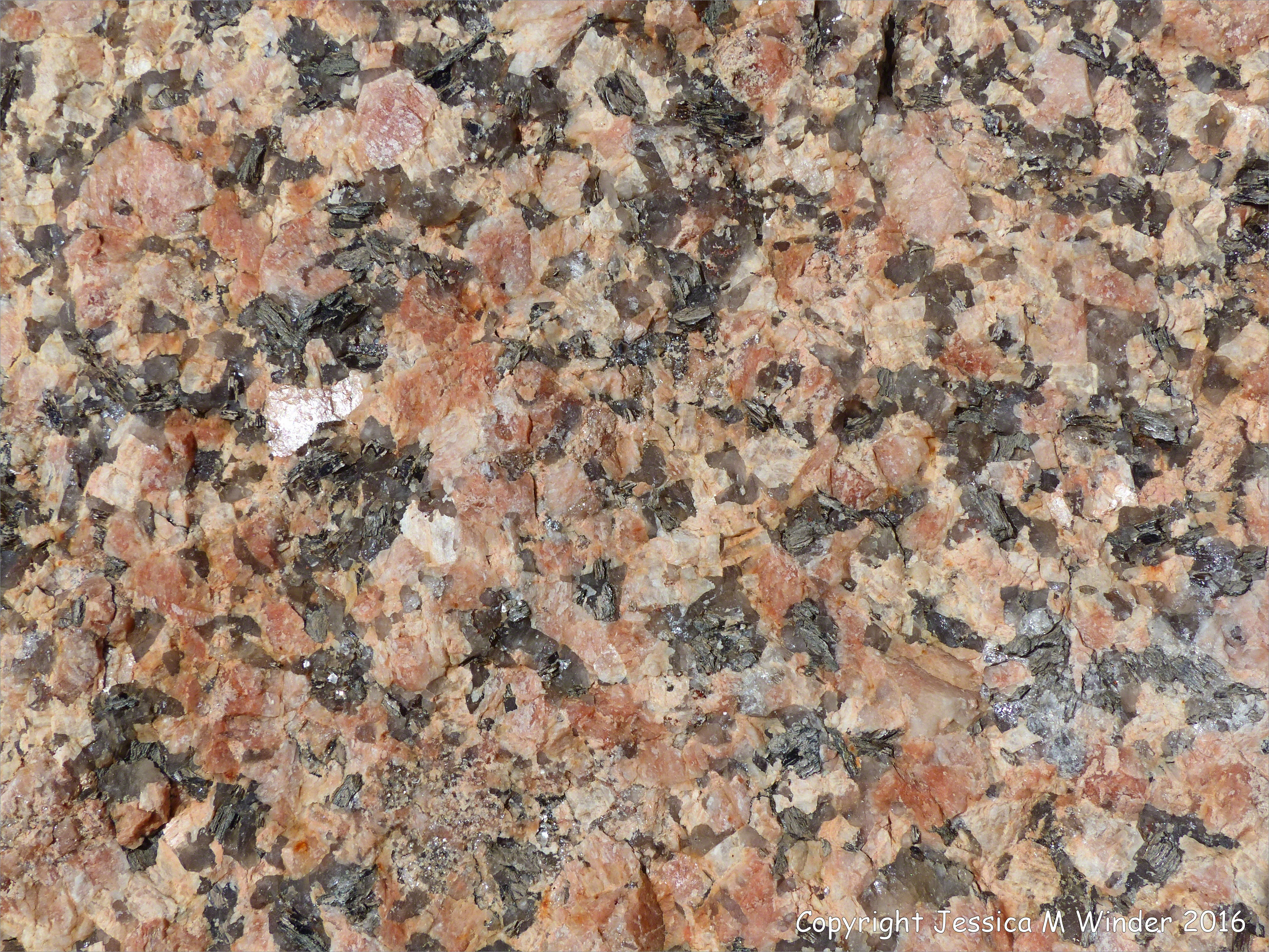 Rock Texture & Pattern at White Point 42 – Macro-photograph of texture and pattern in Devonian plutonic rocks used as rip-rap at White Point harbour in Cape Breton Island, Nova Scotia, Canada, on the Cabot Trail. These rip-rap boulders come from the Black Brook Granitic Suite and include granitic gneiss intruded into biotite schist .
