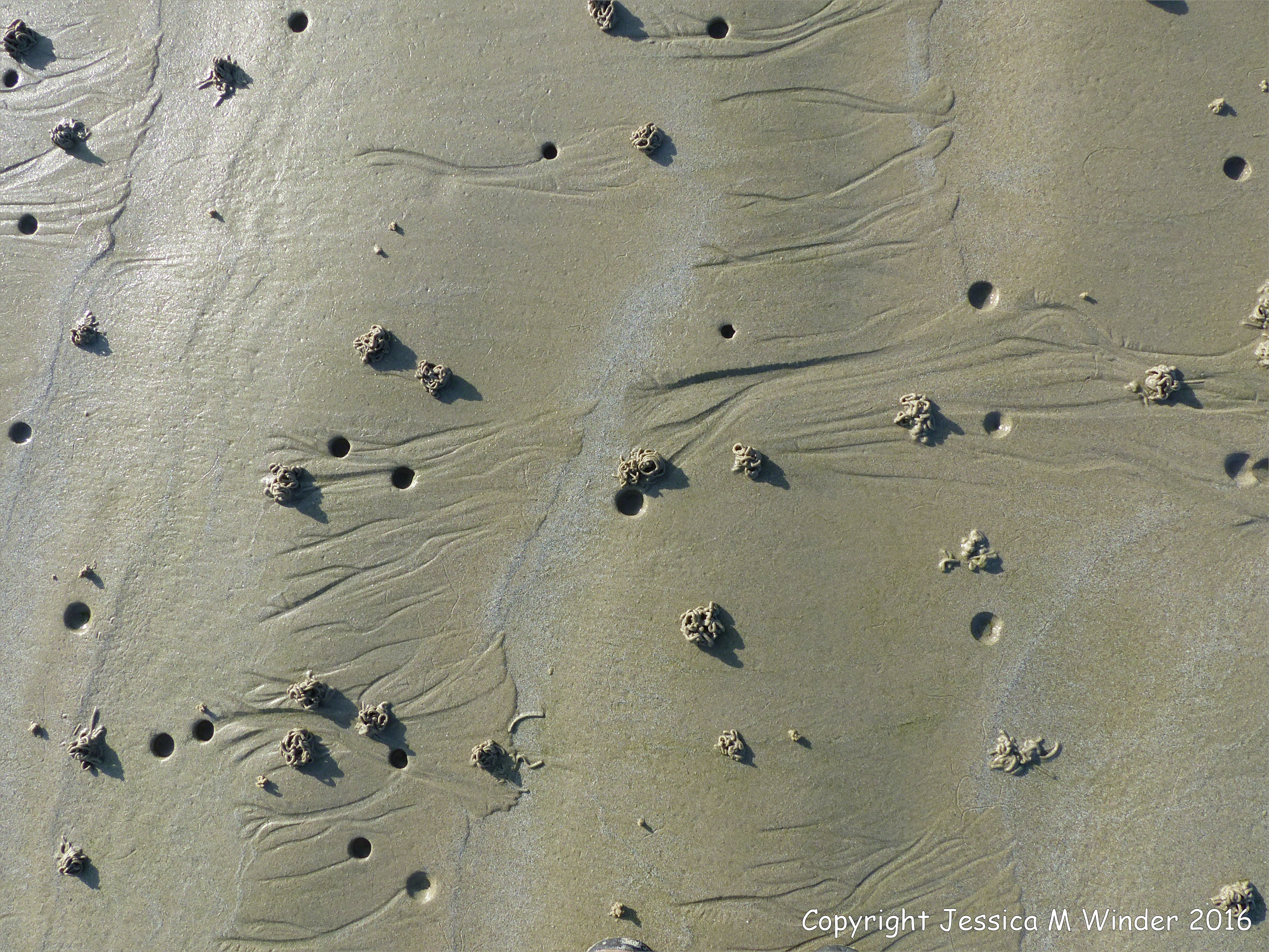 Worm Casts at Pembroke Bay 4 – Lug worm casts and blow holes on a sandy beach at Pembroke Bay on the Channel Island of Guernsey. Probably made by Arenicola marina (Linnaeus) although Arenicola ecaudata Johnston has also been recorded on the island.