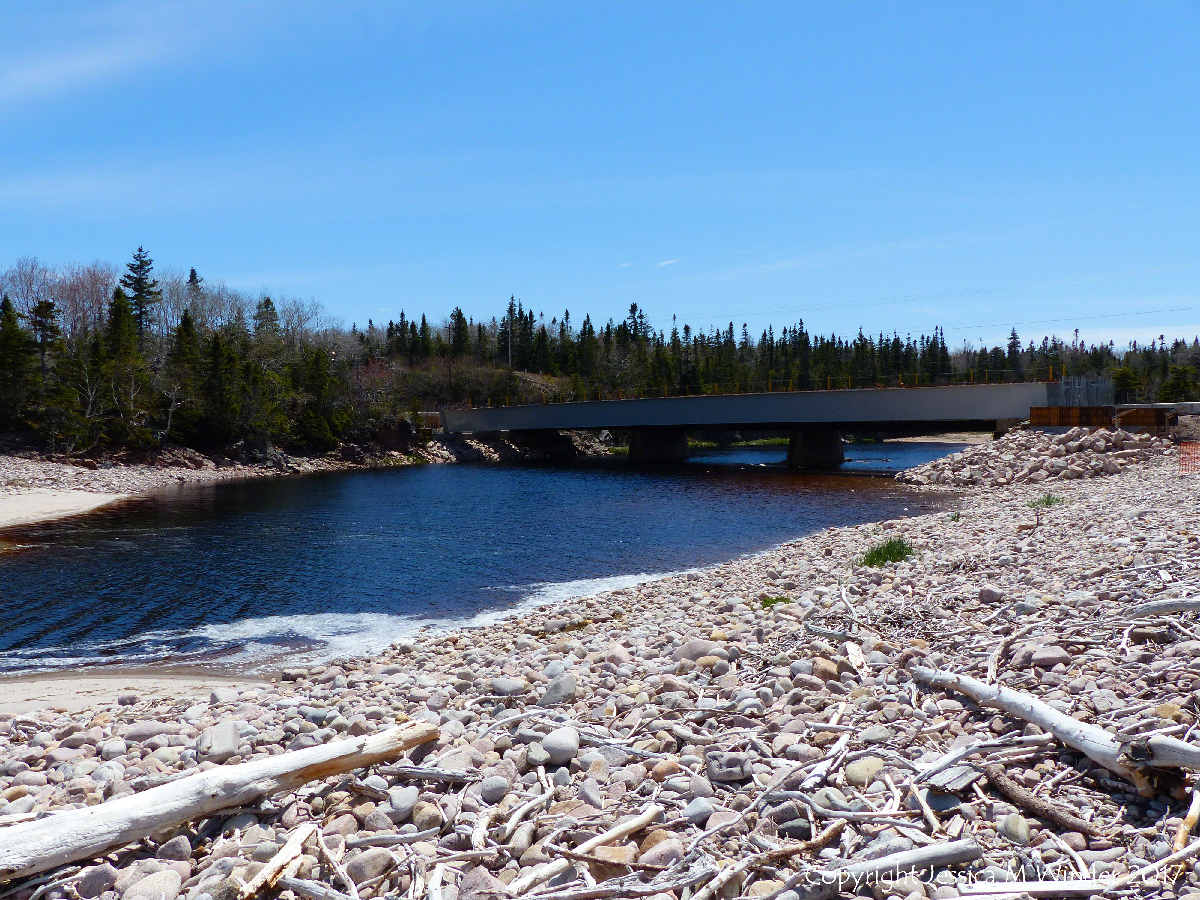 Rock Pattern & Texture at Black Brook Cove 4 – Looking upstream at the dark water flowing in Black Brook at Black Brook Cove along the Cabot Trail, Cape Breton Island, Nova Scotia, Canada.