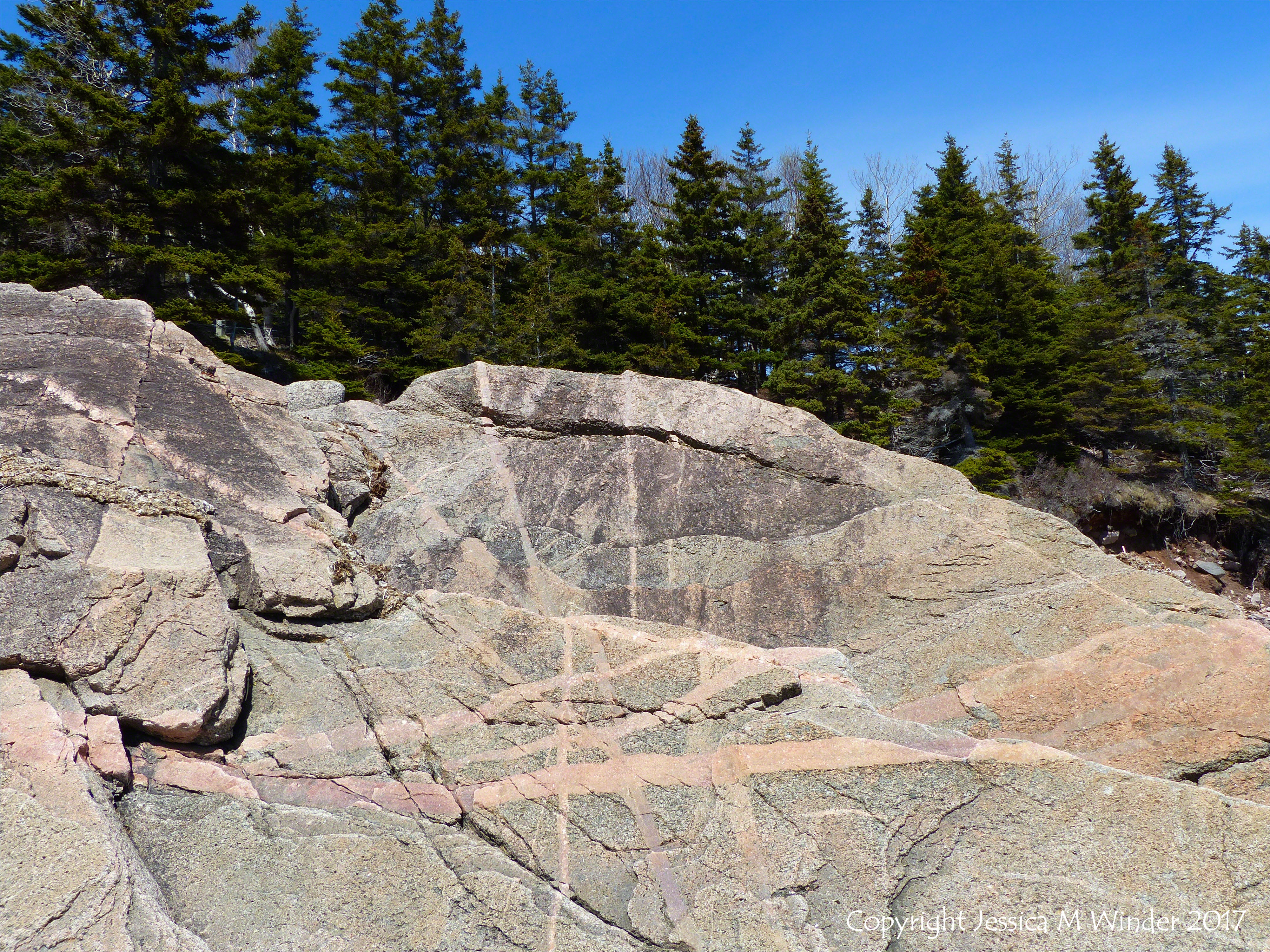 Rock Pattern & Texture at Black Brook Cove 19 – Aplite and pegmatite dykes in granite at Black Brook Cove along the Cabot Trail, Cape Breton Island, Nova Scotia, Canada.