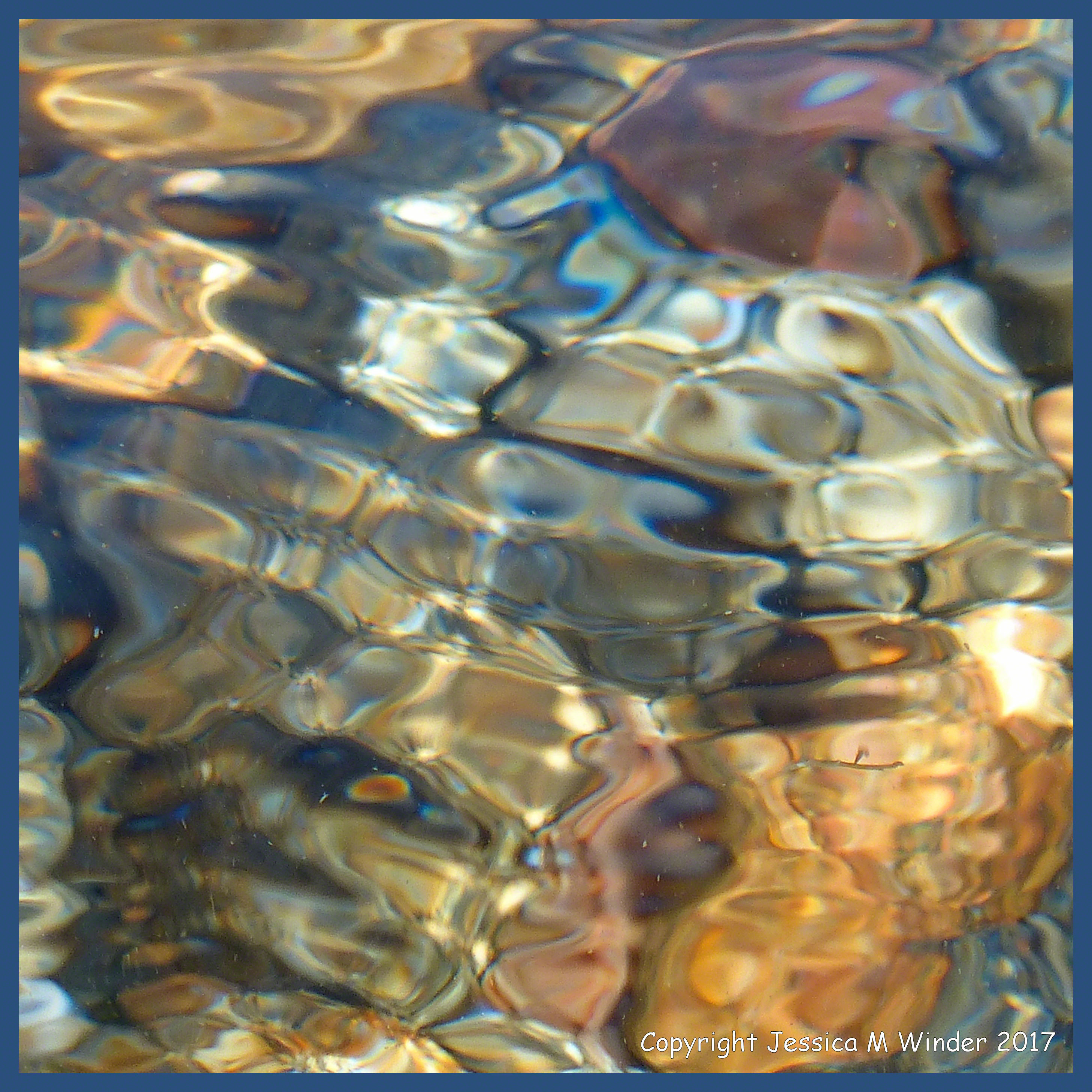 Rousse Ripples 6 – Ripples in lapping clear water on the seashore act as lenses to distort the image of coloured rocks below. Rousse Point, Guernsey, Channel Islands, October 2016.