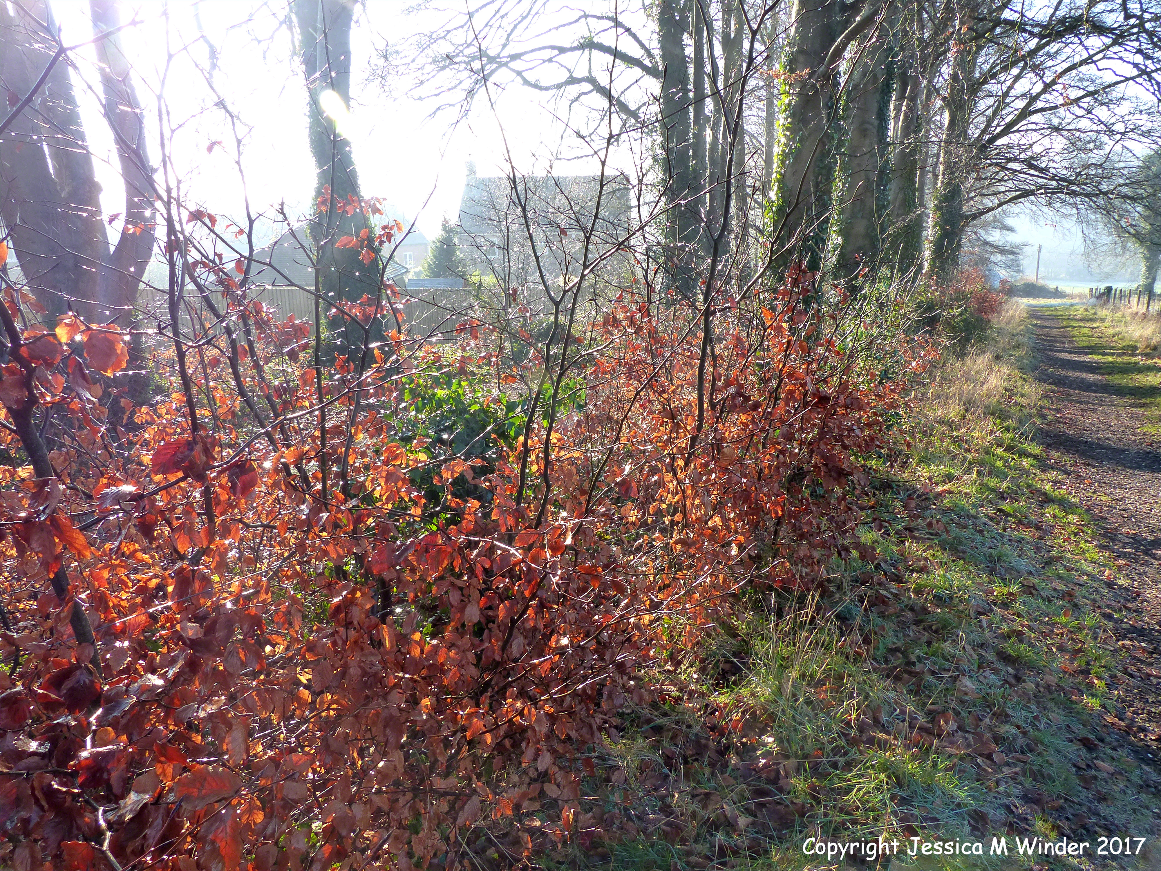 Thawing Hoar Frost on Beech Saplings 9 – The under storey of beech saplings along a country path in Charlton Down, Dorset, England, forming a platform for a dazzling display of sunlit dew drops from melting hoar frost.